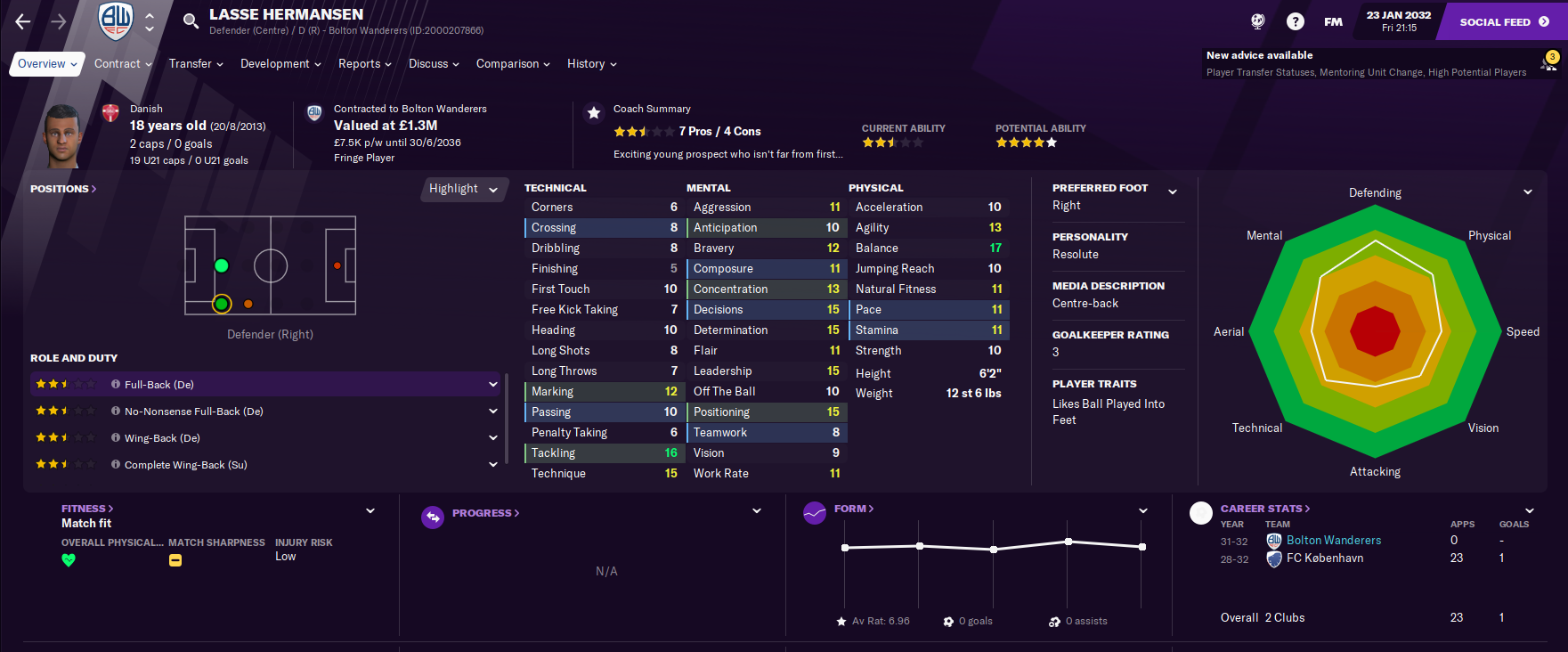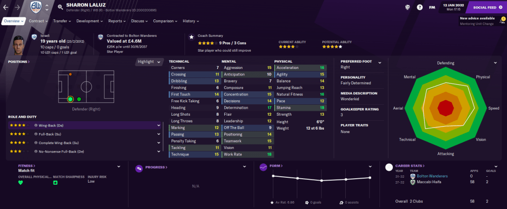We brought in Israeli wonderkid right-back 19-year-old Sharon Laluz for just £750,000, as his Maccabi Haifa contract was expiring in the summer. He looks like an amazing prospect. We also strengthened at centre-back by loaning in Dortmund’s Jerson Patino and exciting 18-year-old Lasse Hermansen, who cost just £1 million from FC Kobenhavn. Another exciting talent arrived in 20-year-old Serbian midfielder Stefan Grubelic for £3 million from Crvena Zvezda, and he’s immediately worth £13.75 million.