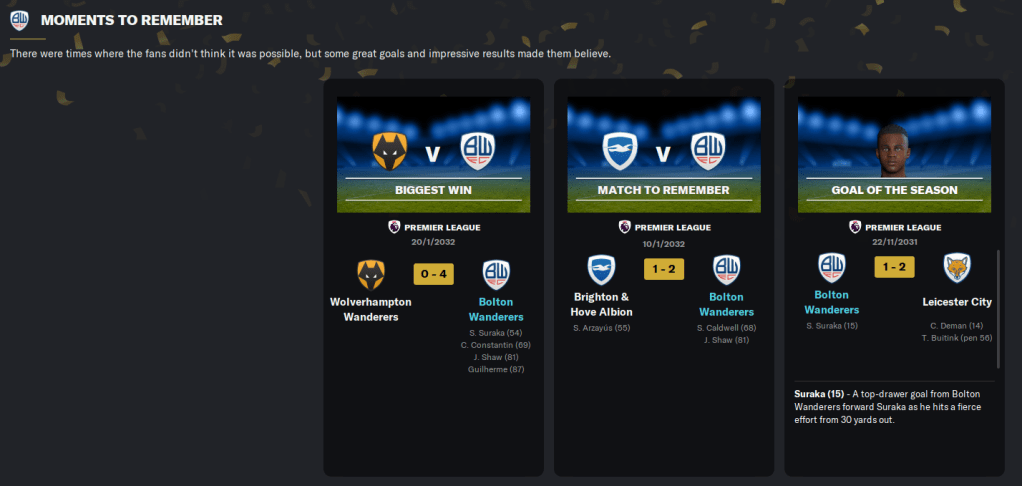 Join us next time to discover whether Bolton can build on their first year of success back in the Premier League!
