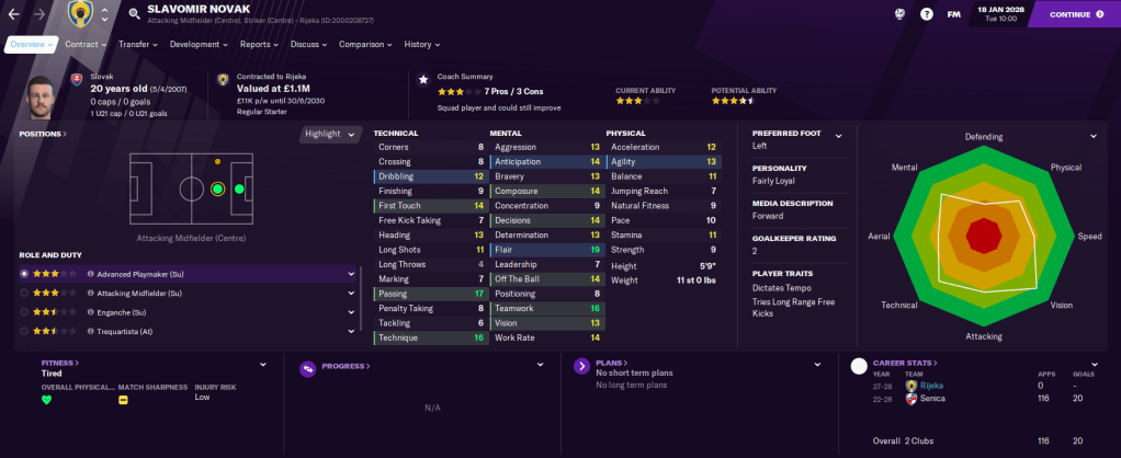 Life in Croatia had gotten off to a solid start but a worrying dip towards the last month or so of 2027 had Vladimir Latunov slightly concerned about the strength of his new HNK Rijeka side. With that in mind, he used a 50-day winter break to begin spending the £20 million or so transfer kitty available to him.