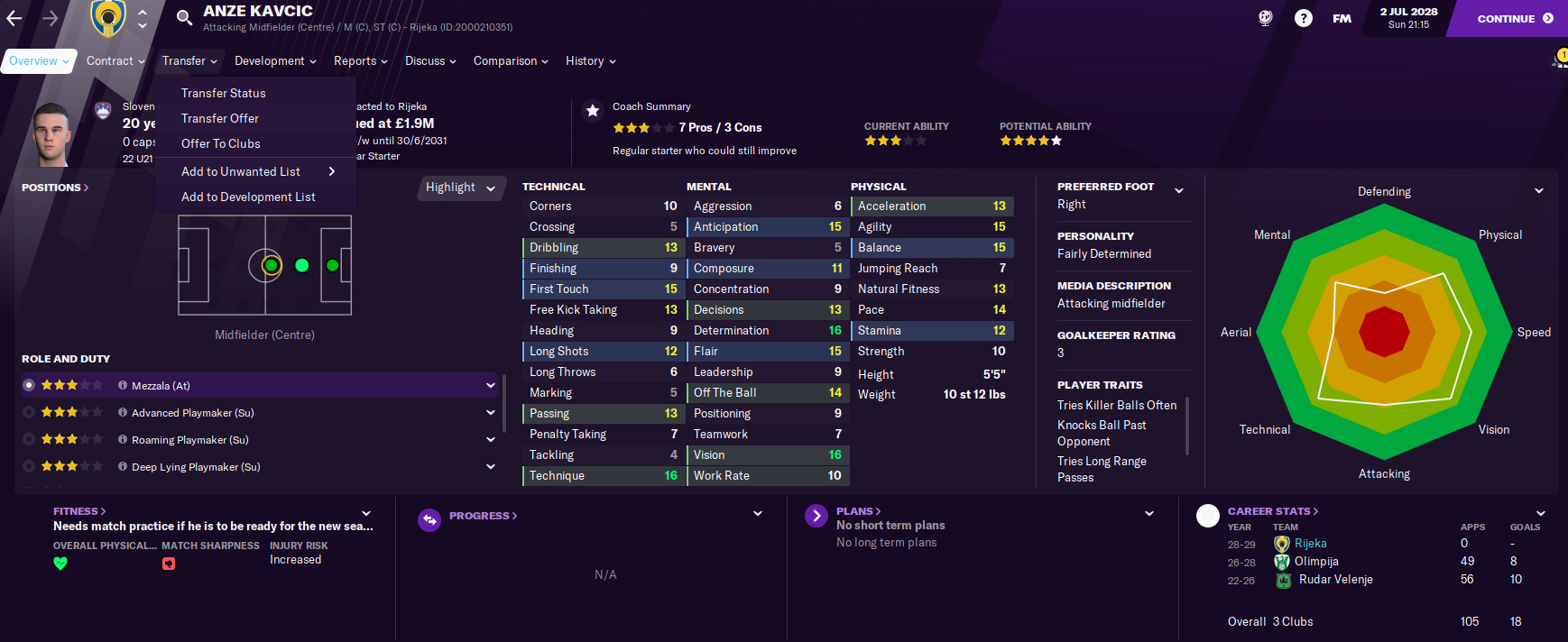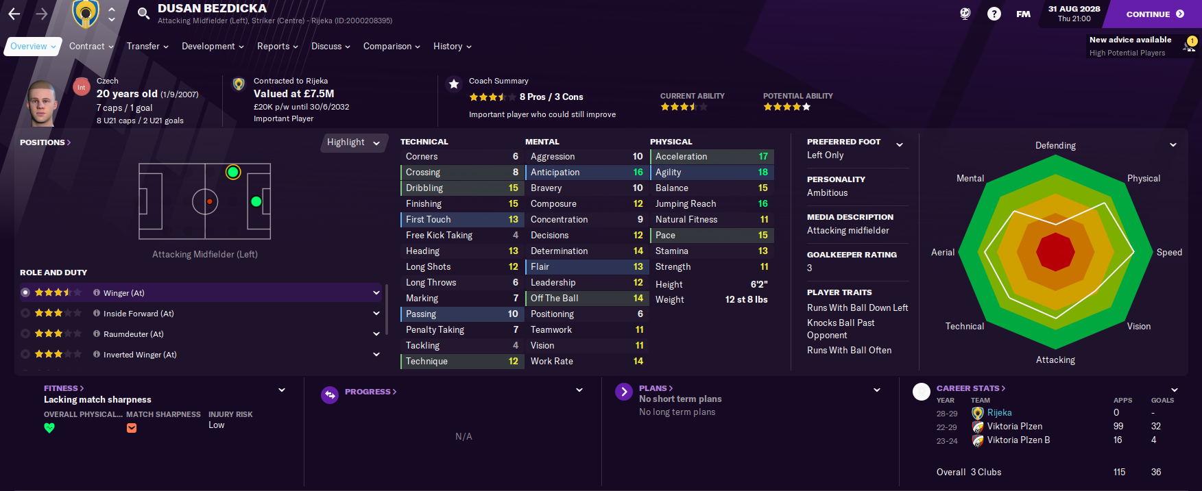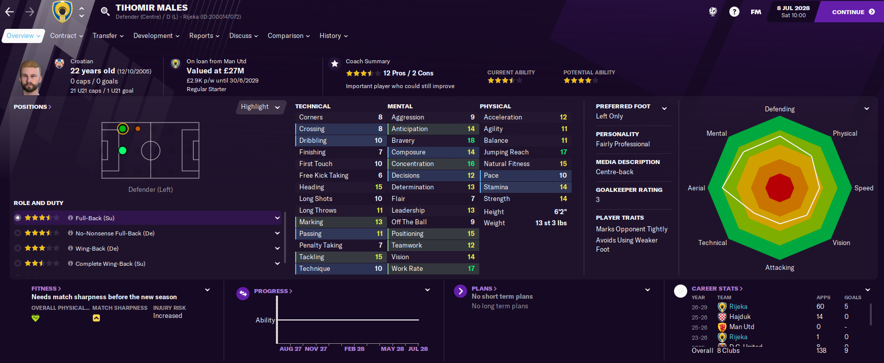 A first season in Croatia ended without a trophy but offered glimpses of promise, including a potential superstar striker smashing goalscoring records. However, the HNK Rijeka board were unhappy with Vladimir Latunov not signing high-reputation players, which he immediately set about addressing in the summer of 2028.