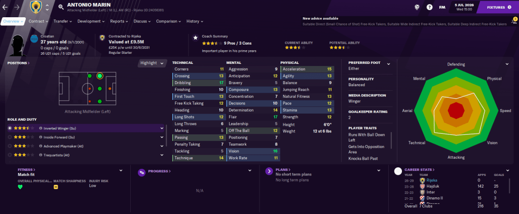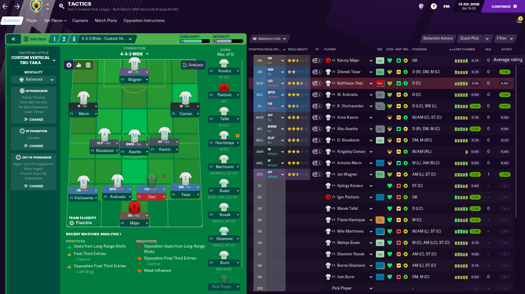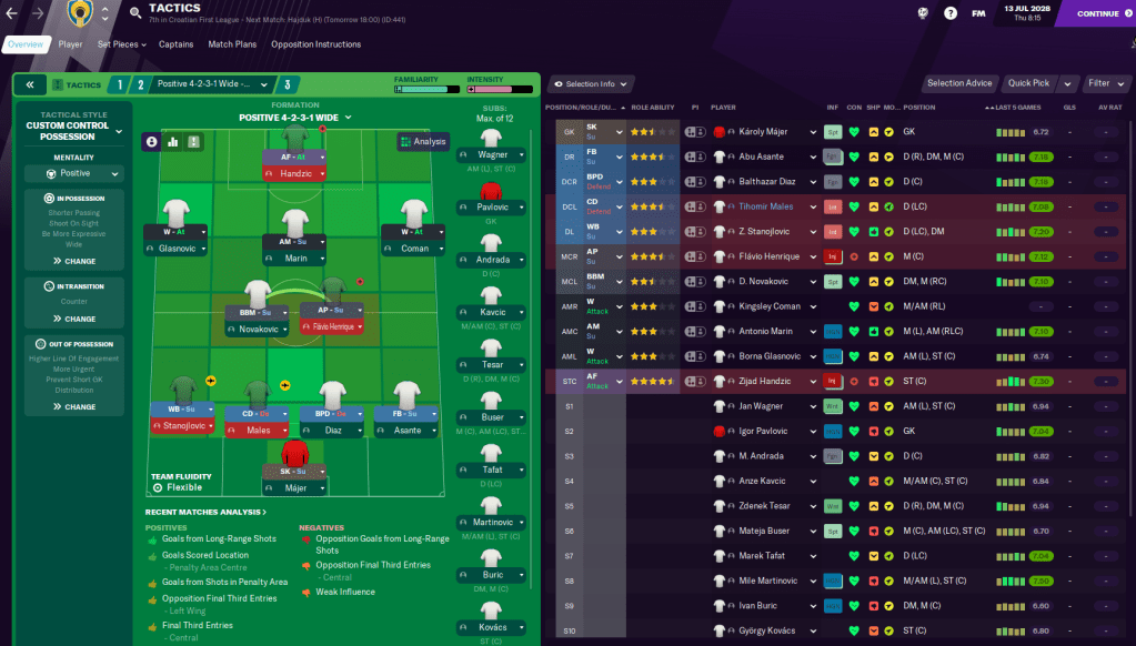 With those attacking signings done, Latunov was quietly confident that he’d built the best team in Croatia and hoped this gave him an opportunity to take a challenge to Dinamo. He was thinking of a more attack-minded 4-2-3-1 formation with Marin playing in the number 10 role, along with a 4-3-3 approach with a flat three in midfield.