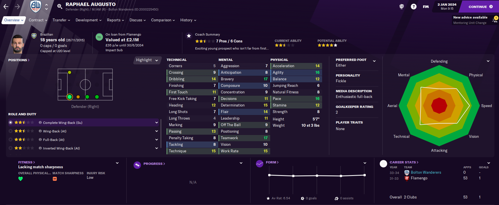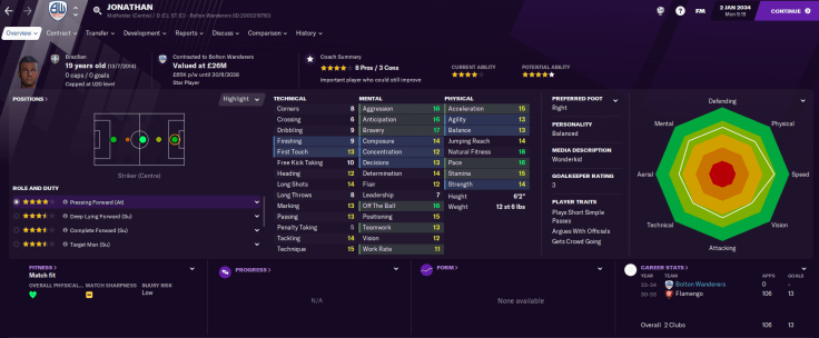 There are few things in Football Manager that I love more than unearthing a talented Brazilian wonderkid midfielder. And the good news for Bolton Wanderers fans was that, in January 2034, I snapped up not one but two at the same time.