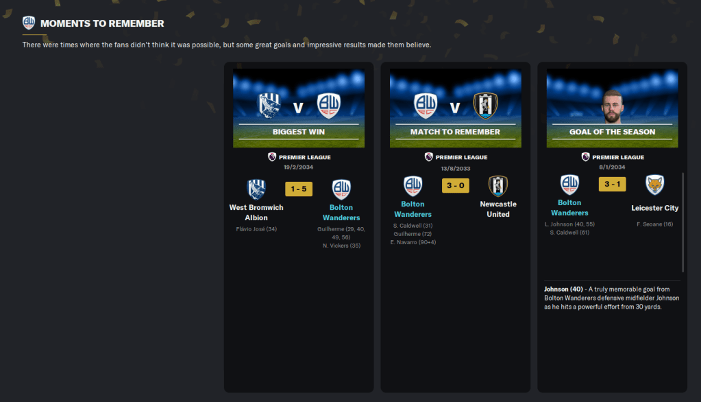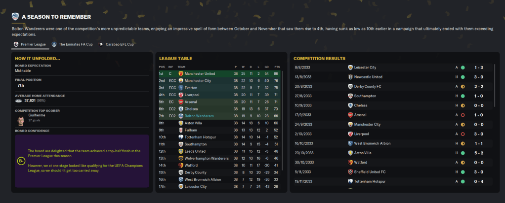 Join us next time as we look to strengthen our Bolton squad to cement our status in the top half and build for a first European campaign since 2007!