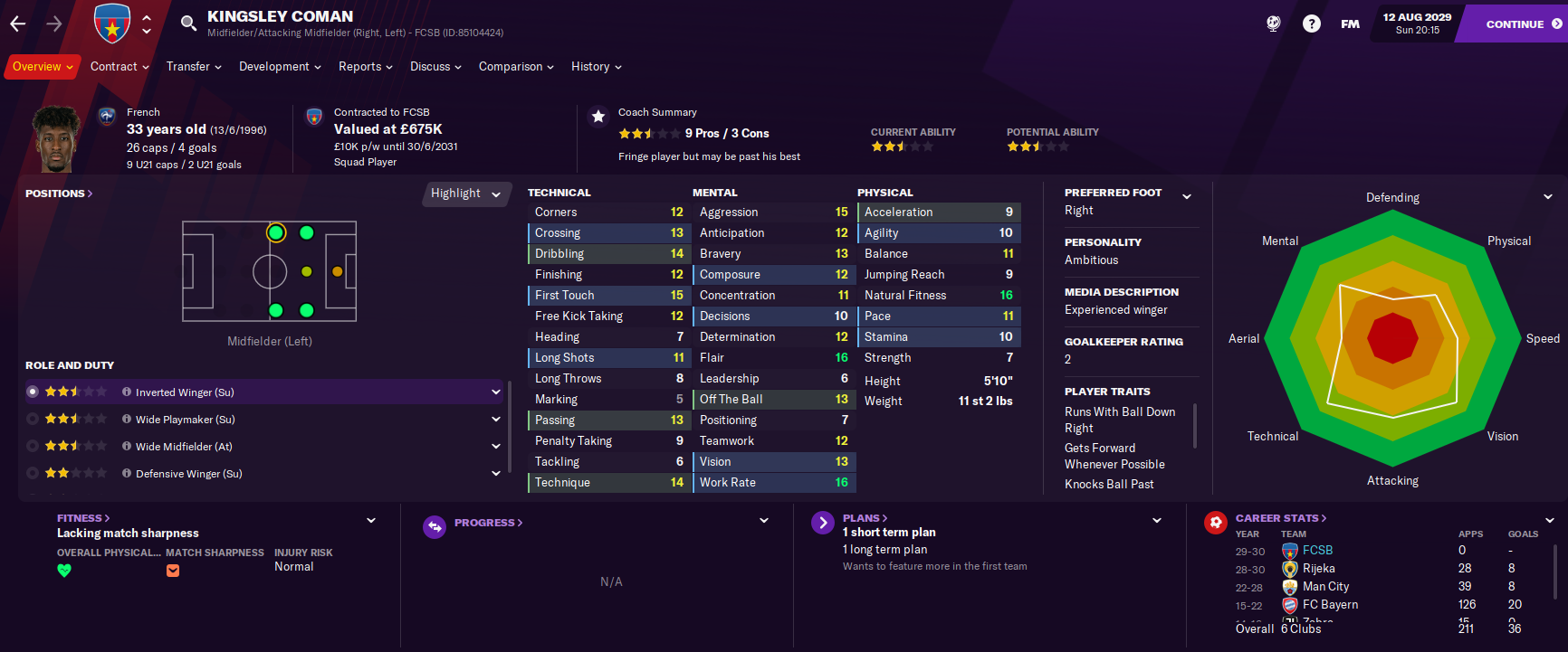 Fotbal Club FCSB play at the 55,634 capacity Arena Nationala and have good youth coaching, exceptional youth recruitment, excellent training and superb youth facilities. They have a balance of £19 million, which is about £10 million less than Rijeka had, and a transfer budget of £11 million and weekly wage budget of £195,235 to work with.