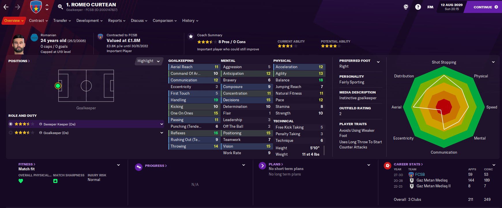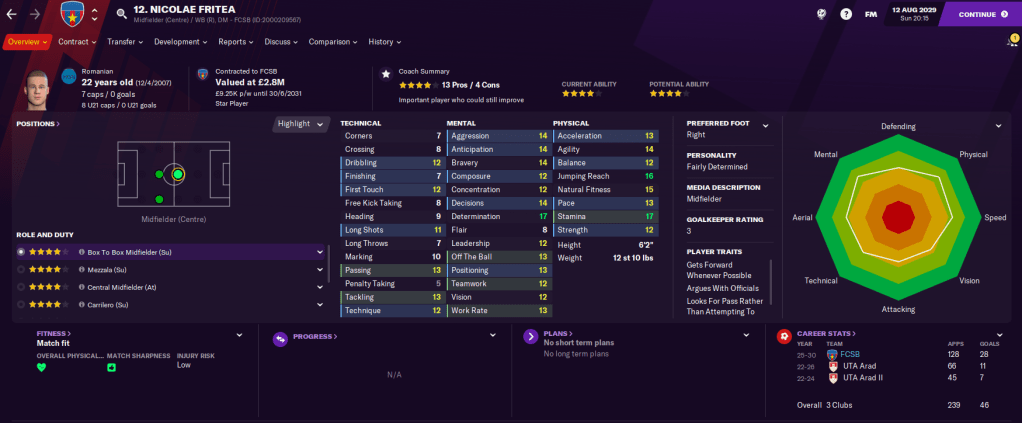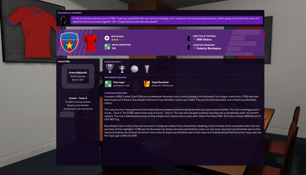 Latunov’s new side are the favourites to win the Romanian title. They have done so five times through this save and most recently in 2026, but finished second last season, which prompted them to sack their manager. So no pressure there then! Biggest challengers include Viitorul, who’ve won the last two titles, Cluj, who won the title before that, Universitatea Craiova, Dinamo Bucharest and Astra Giurgiu.
