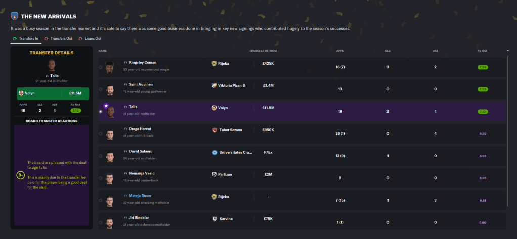 In other news, Zijad Handzic, Latunov’s star striker at Rijeka, moved to Liverpool for £20 million and scored 12 in 24 league games.