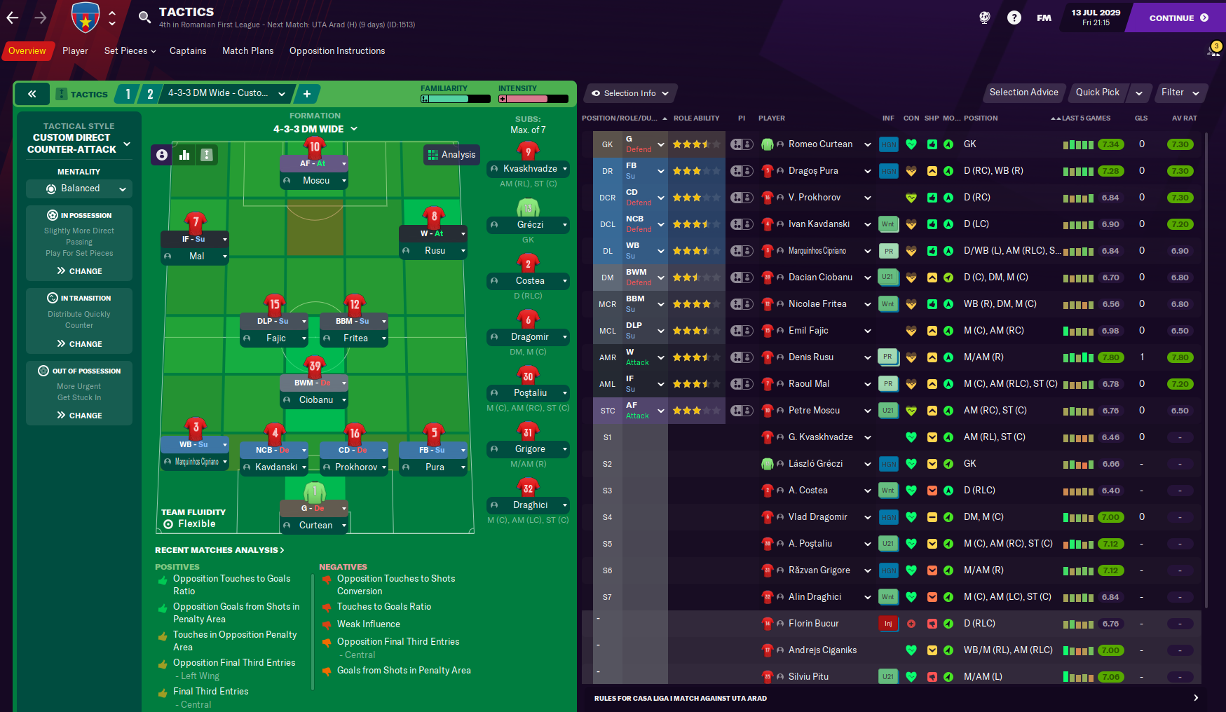 Latunov bolstered the ranks with two of his Rijeka players in loanee midfielder Mateja Buser and winger Kingsley Coman, who cost just £250,000. He also strengthened in defence with Serbian centre-back Nemanja Vesic, as well as midfielder David Salaoru from Craiova and full-back Drago Horvat. However, he wasn’t able to register any of these new signing for the first few games. And from his initial look at the FCSB squad, Latunov decided to start with a counter-attacking 4-3-3 DM formation.