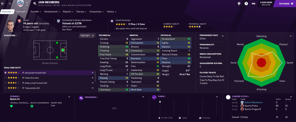 Back in Bolton, a key part of this save to date moved on from the club as attacker Solomon Suraka joined Wolves for £32.5 million. Now 22, he wasn’t up to the same standard as our other strikers and barely got a game last season, so it was best for all parties to have a fresh start and we did well to get that much for him.