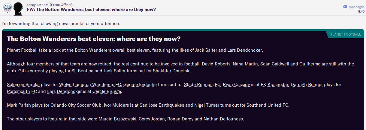 After 15 years in-game at Bolton Wanderers, I thought it’d be good to reflect on our time at the club and have a look around the world of football in 2035. So read on for our best players, competition histories, manager updates, and the best regens in the world!