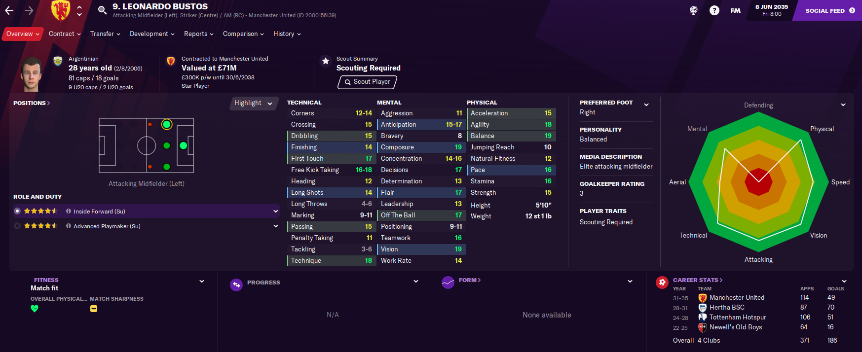 Transfer-wise, United have made the three most expensive signings of the save. Bustos is the biggest at £123 million from Hertha, followed by Bruno Costa and Carlos Serrano from Barca for £122 million and £121 million. One player, Daijiro Tojo, has moved for more than £100 million twice, with the latter moving him to Chelsea from Valencia.