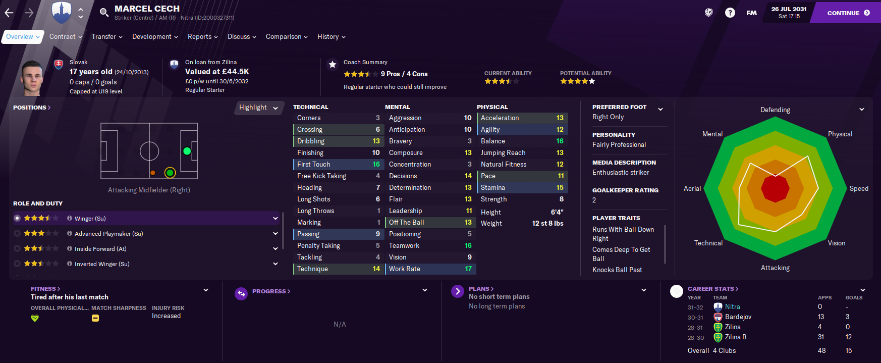 One major concern was that the second-best and, realistically, only other striker at the club was 15 and therefore ineligible for the first team. To address that, he loaned in another 17-year-old in Zilina attacker Marcel Cech. The squad is also packed with exciting prospects, so the future is definitely looking strong at Nitra.
