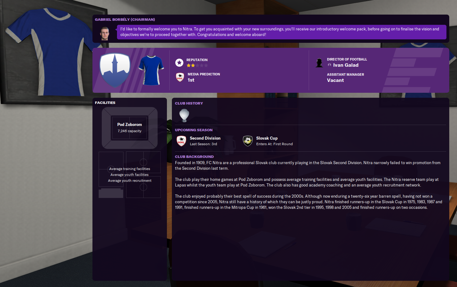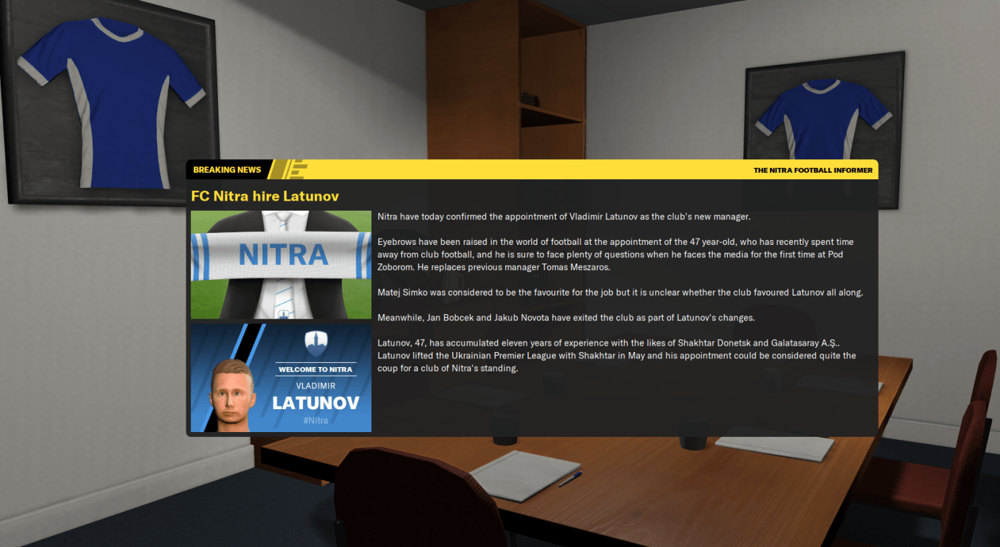 The Nitra board expects Latunov to lead the club to promotion by winning the league. To do so, there isn’t much money, with only £1 million in the bank balance – which was certainly a shock to the system.