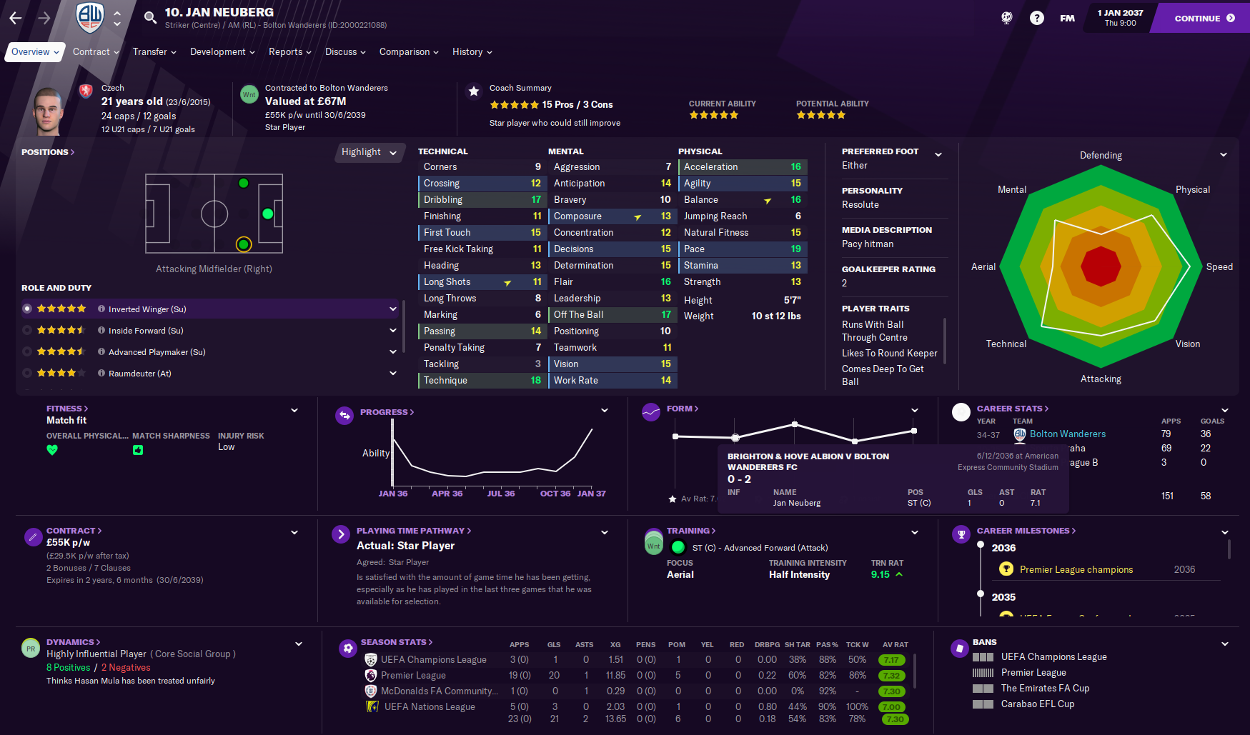 Neuberg’s great form resulted in him winning the FIFA Best Under 21 Men’s Player award, after scoring 26 goals in 41 games this calendar year. And he’s become a fantastic striker, not just in the stats but also in his attributes.