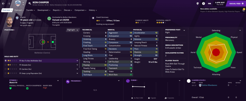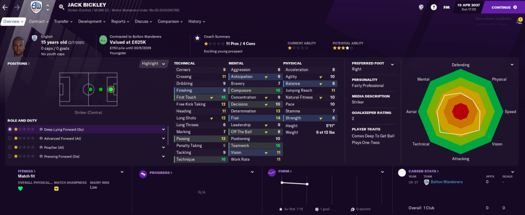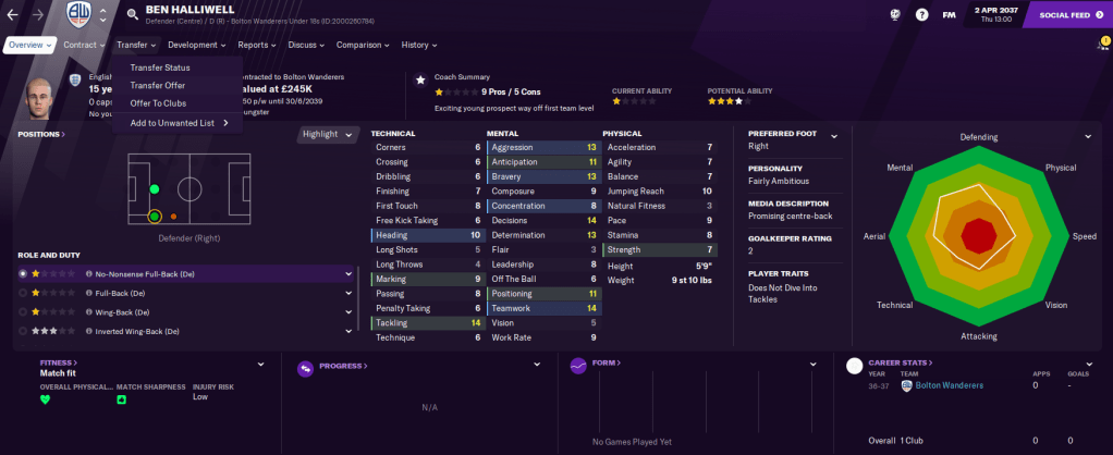 There are several more players with potential coming through the ranks, including striker Luca Godden, full-backs Aiden Main, Logan Holtz and Jack Barlow, and midfielders Stewart Allen and Craig Radcliffe. We also had another solid youth intake, from which the pick of the players were probably strikers Jack Bickley, who’s already wanted by Liverpool and Chelsea, and Ken Cooper and defender Ben Halliwell, as well as bringing through Brazilian defender Felisberto, who’s not very good but it was fun to get a Brazilian youngster!