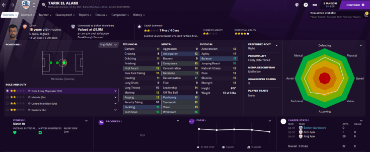 Lots of our players were accruing interest from big teams around Europe. That included midfielder Mathias Hansen, who was worth £46.5 million but attracted a pathetic £28 million bid from Bayern. That figure was blown out of the water as Real Madrid came in with a huge £77 million offer, which I tried to negotiate and they unusually refused. And that meant we kept hold of our better players until at least the summer.