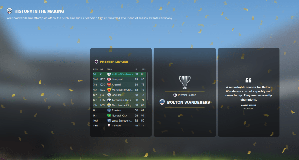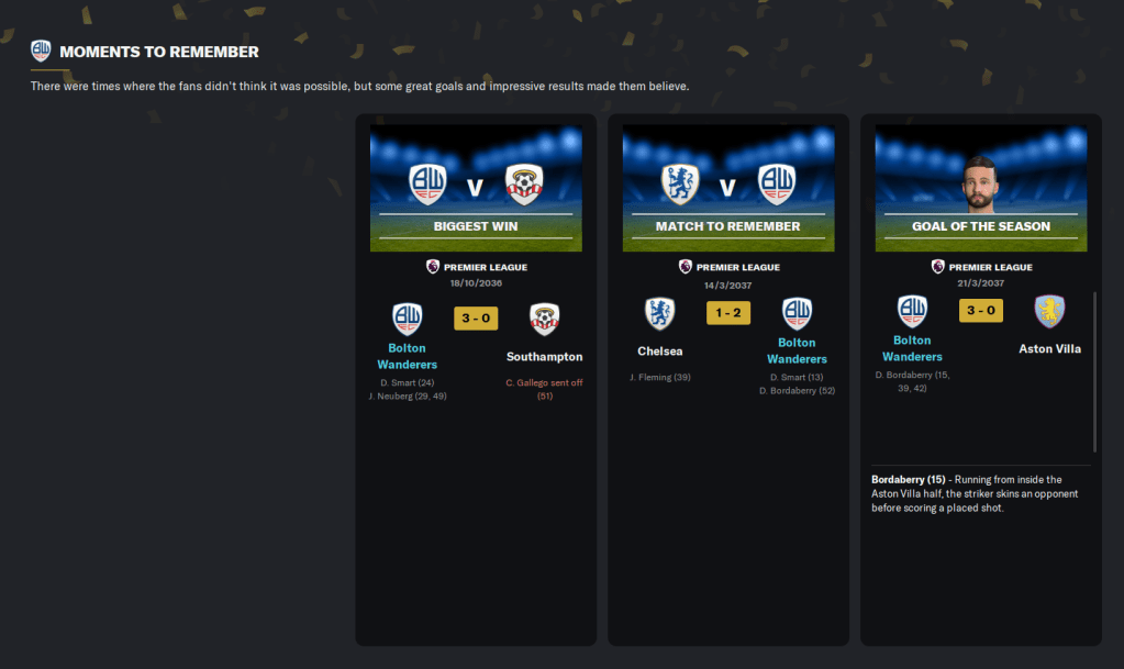 Join us next time to see how we go about rebuilding for a second Bolton Wanderers title defence and attempting to improve our Champions League exploits.