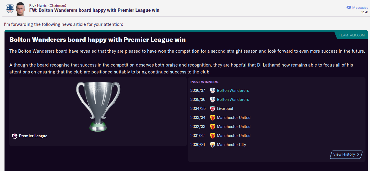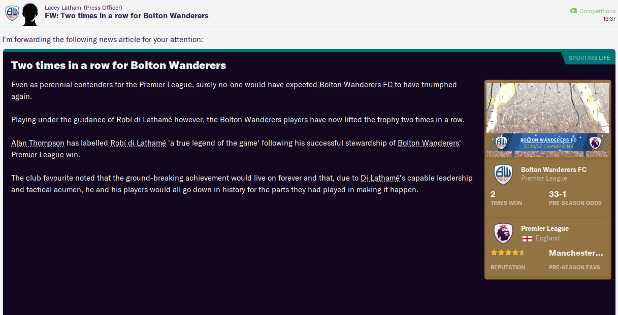 Bolton Wanderers defended their Premier League title in 2036/37!!