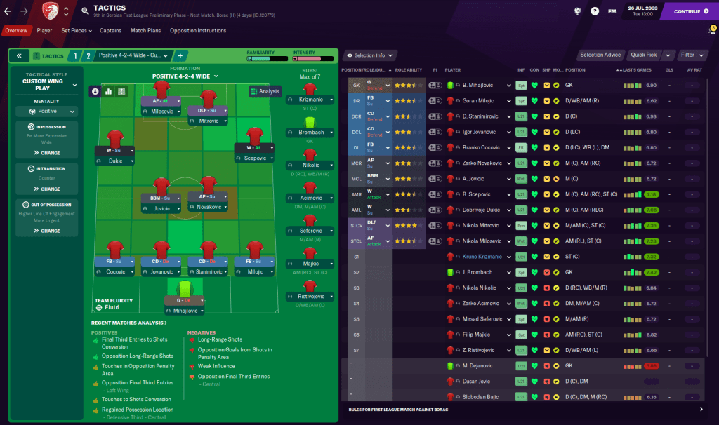 Notably, he has a very young squad to work with that includes a starting centre-back partnership of 18-year-old Igor Jovanovic and 19-year-old Nikola Nikolic and very exciting 18-year-old central midfielder Zarko Novakovic. Tactically, Latunov decided to revert to his attacking 4-4-2 formation that had worked well with Honvéd and Shakhtar in previous roles.