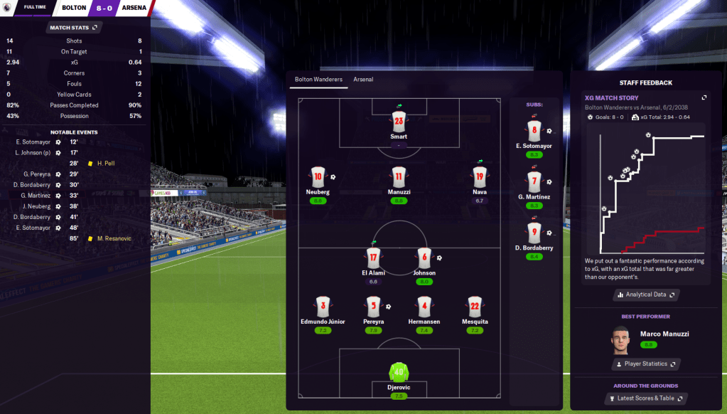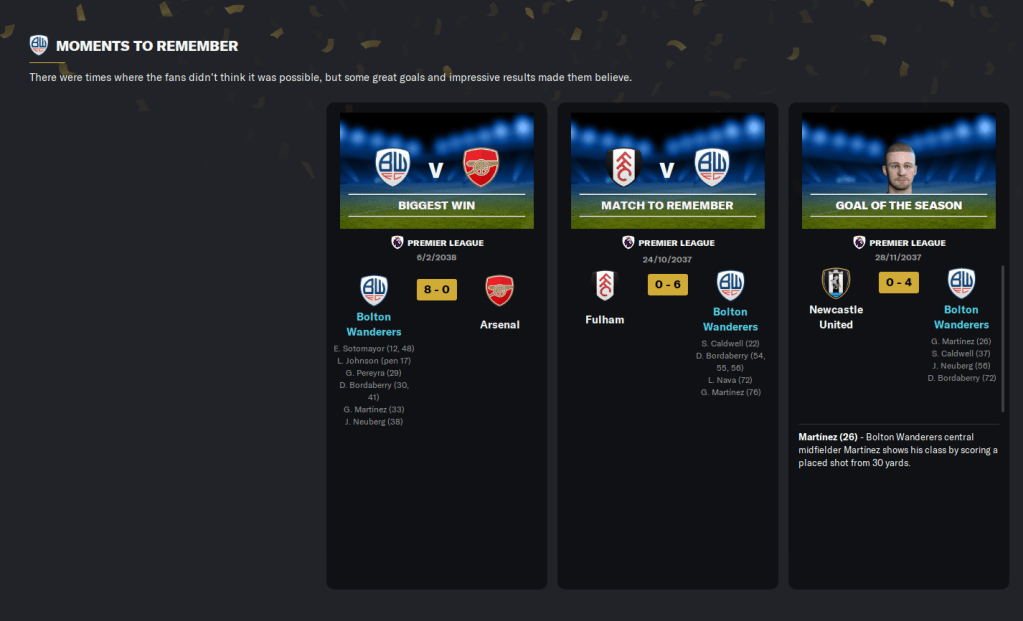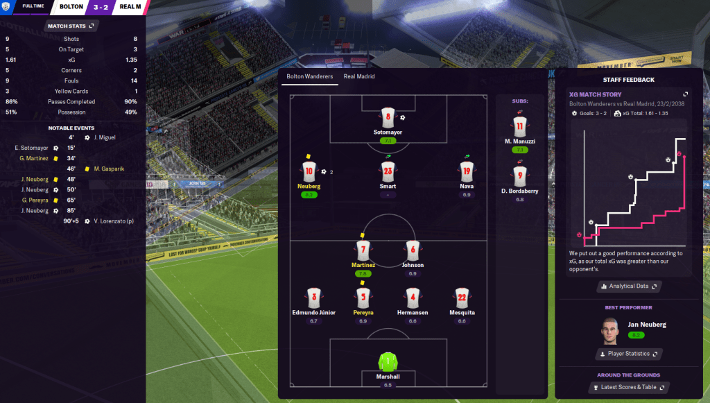 Bolton Wanderers’ second Premier League title defence was off to a superb start as they headed into 2038 unbeaten. They were on a 24-match streak without losing in the league and were looking forward to an exciting clash with Real Madrid in the Champions League knockout stages.
