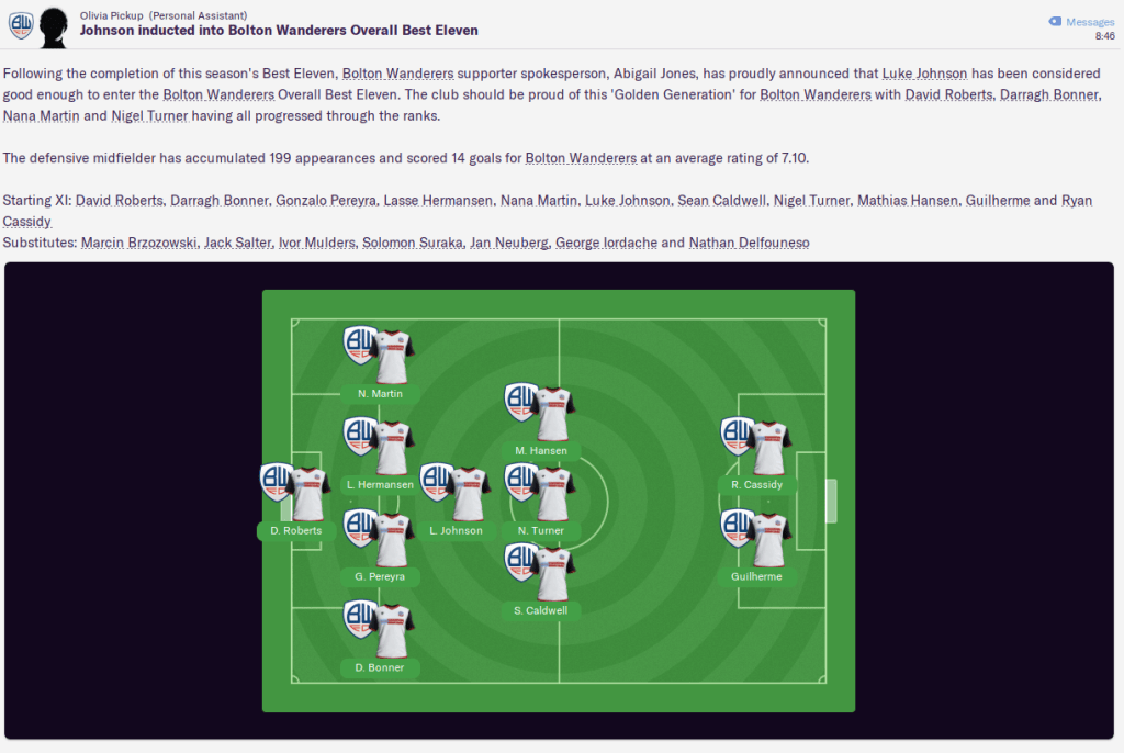 That win saw me not only move into the top English managers Hall of Fame for the first time, I was also instilled as a Bolton Wanderers Legend alongside the truly legendary Nat Lofthouse. Strangely, only Guilherme and Sean Caldwell are among the fans’ icons and favoured personnel.