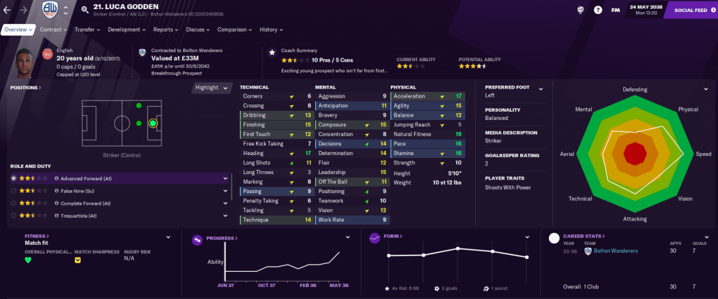 There was no letting up as Godden scored a brace in a 4-1 thumping of West Ham then scored again alongside Bordaberry’s 30th of the season and a Johnson in another 4-1 win at Southampton. But we finally relented against struggling Derby as I threw in all the youngsters in and we lost our final two games.