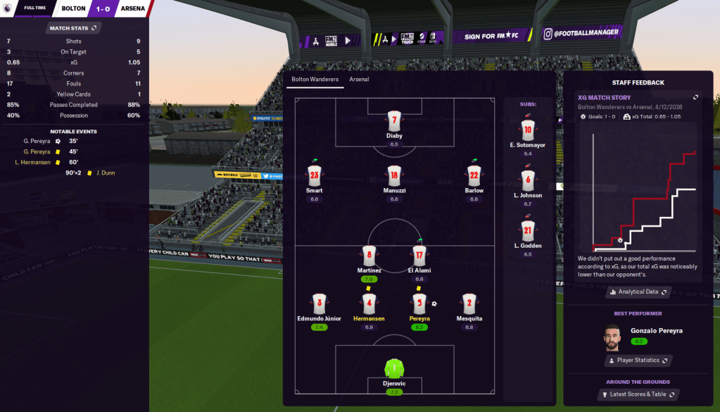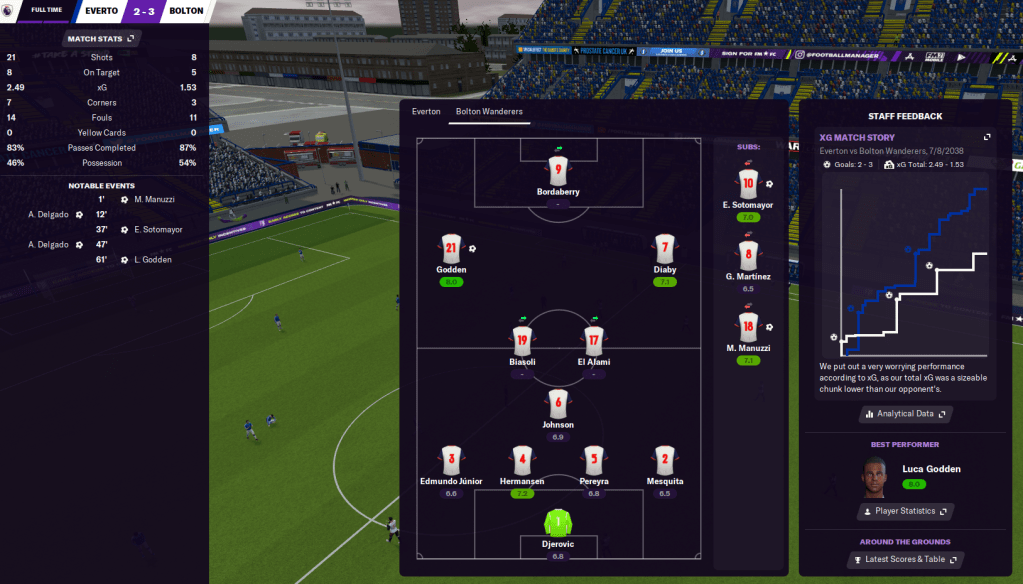 As Bolton Wanderers’ young squad flourished, the club was becoming an increasingly dominant force in the Premier League. The 2037/38 campaign saw us only lose once until the final two games of the season in wrapping up a third successive title. And the squad was set to become even strong in the summer of 2038.