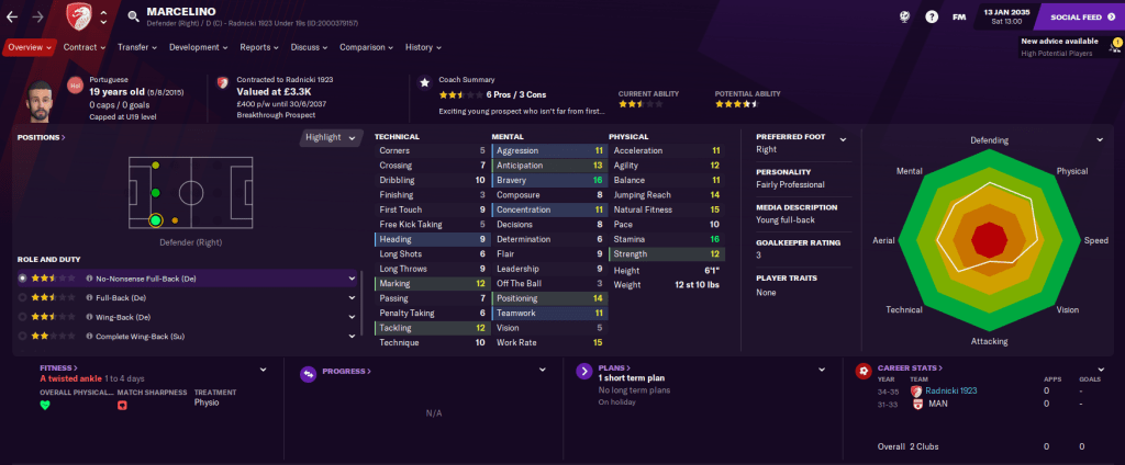 The opening fixtures of 2035 weren’t pretty as FK Radnicki 1923 entertained Cukaricki, to whom they’d lost 4-1 away, then faced a daunting trip to Partizan. To make matters worse, they had both first-choice wingers injured. First up, Valentine’s Day saw Cukaricki come to town and, despite conceding early and being battered by 28 shots to nine, Radnicki nicked a 1-1 draw thanks to a goal from top scorer Nikola Milosevic. They also took a hammering at Partizan but only lost 2-0 – but they did win 6-2 on yellow cards.
