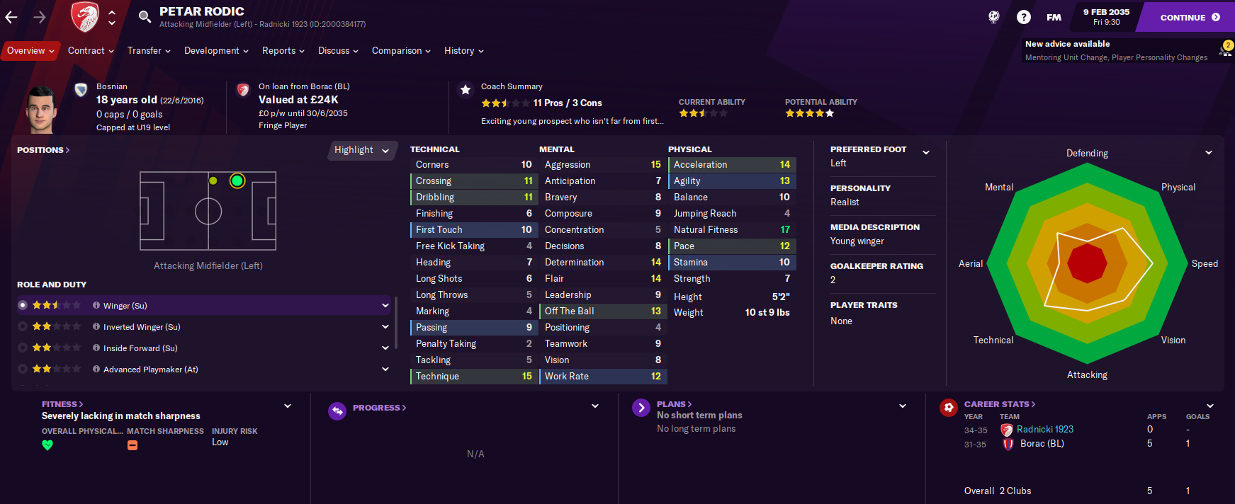A strong start to their first season in the Serbian SuperLeague saw FK Radnicki 1923 Kragujevac sitting fourth heading into 2035, despite the media expecting them to finish 12th. Crveni Djavoli only trailed Serbian giants Red Star and Partizan and surprise leaders Vozdovac, who were expected to finish mid-table, with eight games of the Preliminary Phase remaining.