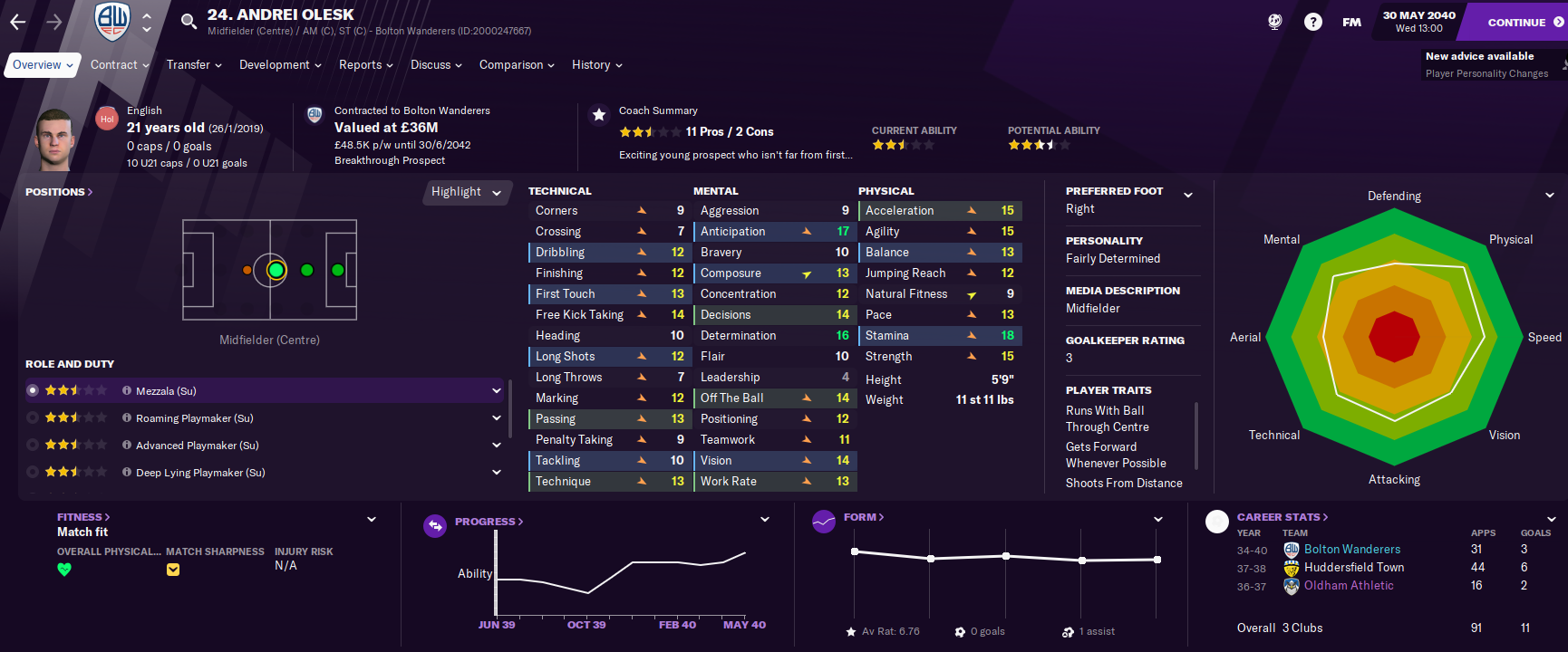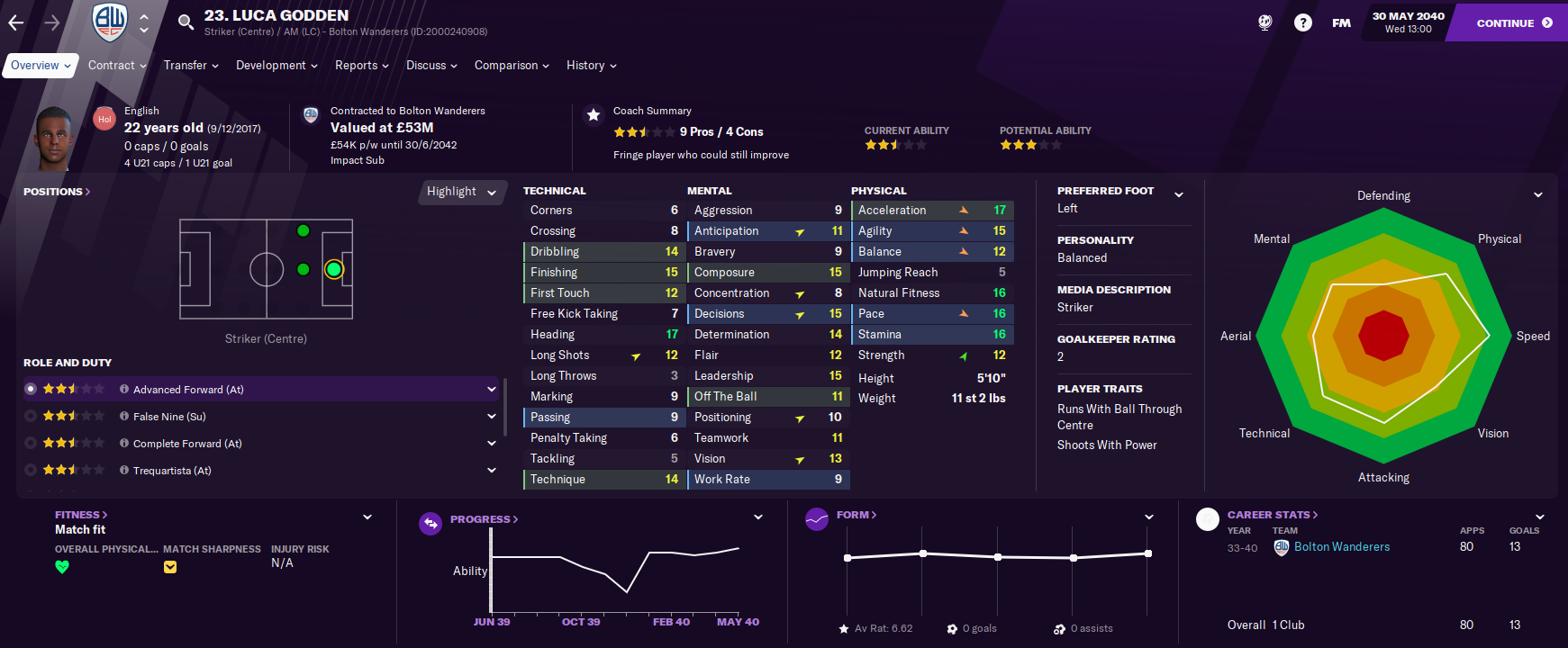 This has also been a very exciting season for our academy products. Barlow won his first England cap and Bickley, Olesk and Iwan Sinnott have shown real promise. But all of our talents so far have been well and truly usurped by Adam Nolan coming through our latest youth intake. At 15, he’s already the sixth-best midfielder at the club. Just check out how fantastic this kid looks, along with the other NINE homegrown players already in the first-team. We also have seven further homegrown players coming through with at least 4-star potential.