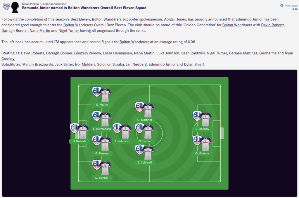 A prominent feature of this save has been our academy products, which have played a key role in our promotions and ongoing success. We have 10 Trotter Talents in the current first-team while the likes of David Roberts, Nana Martin, Darragh Bonner, Luke Johnson, Jack Salter, Solomon Suraka and Dylan Smart are part of the overall best 11: