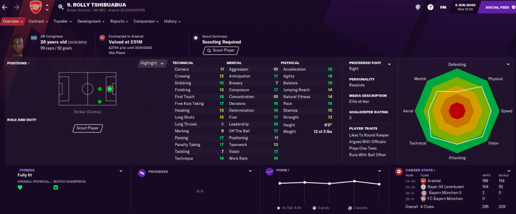 I’ve now been in charge of Bolton for 7,250 days and taken charge of 1,030 games, winning 517, drawing 252 and losing 261. That puts me first on the all-time list of games managed by Bolton bosses but some five years behind the reign of Charles Foweraker. In my time, we’ve won seven leagues, four cups and gotten three promotions, scoring 1,611 goals and conceding 1,068. I’ve bought 117 players for a value of £405 million and sold 160 for a total of £1.1 billion.