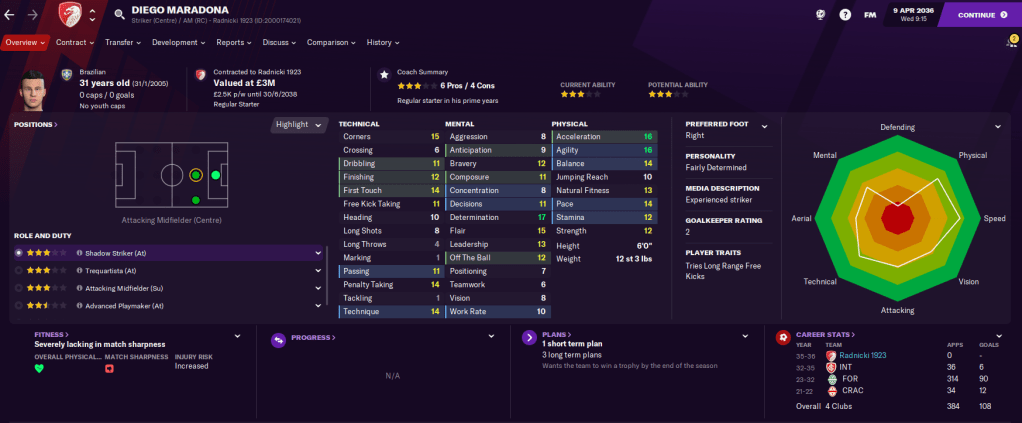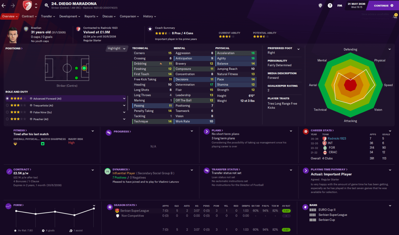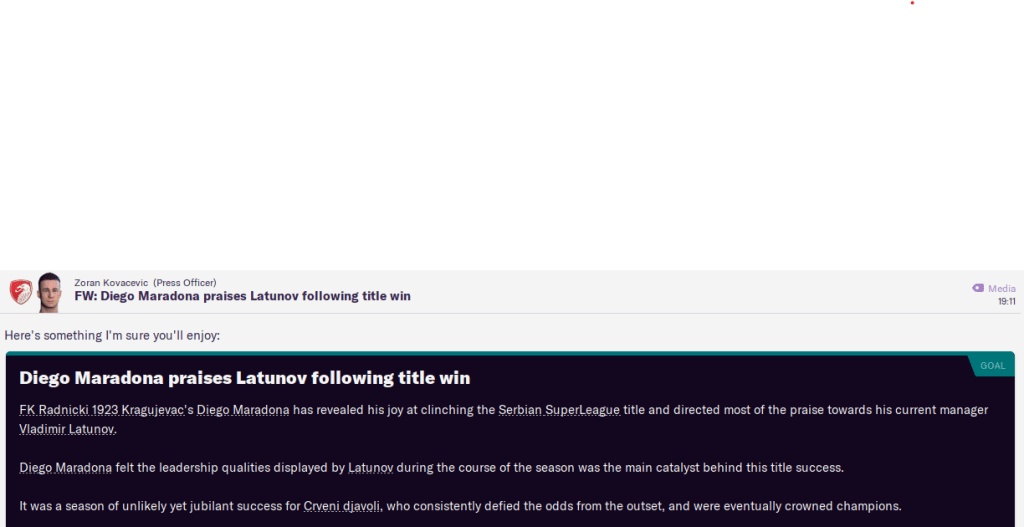 That meant the Serbian title was very much a possibility heading into the seven-game Serbian SuperLeague Final Phase. And to assist the team’s attacking efforts, Latunov signed Diego Maradona, a Brazilian attacking midfielder/striker on a free transfer.