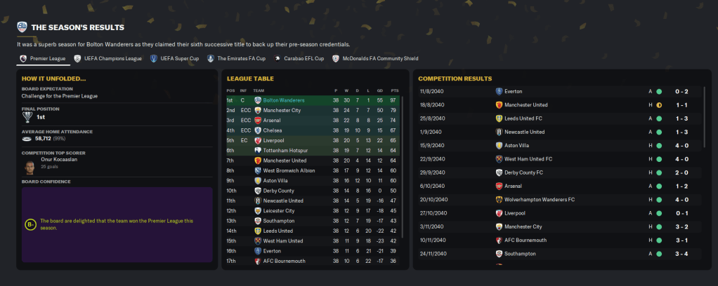 This Bolton Wanderers side has become absolutely exceptional, which was highlighted by them remaining unbeaten and dominating the Premier League with a 19-point lead at the midway point of the 2040/41 campaign.