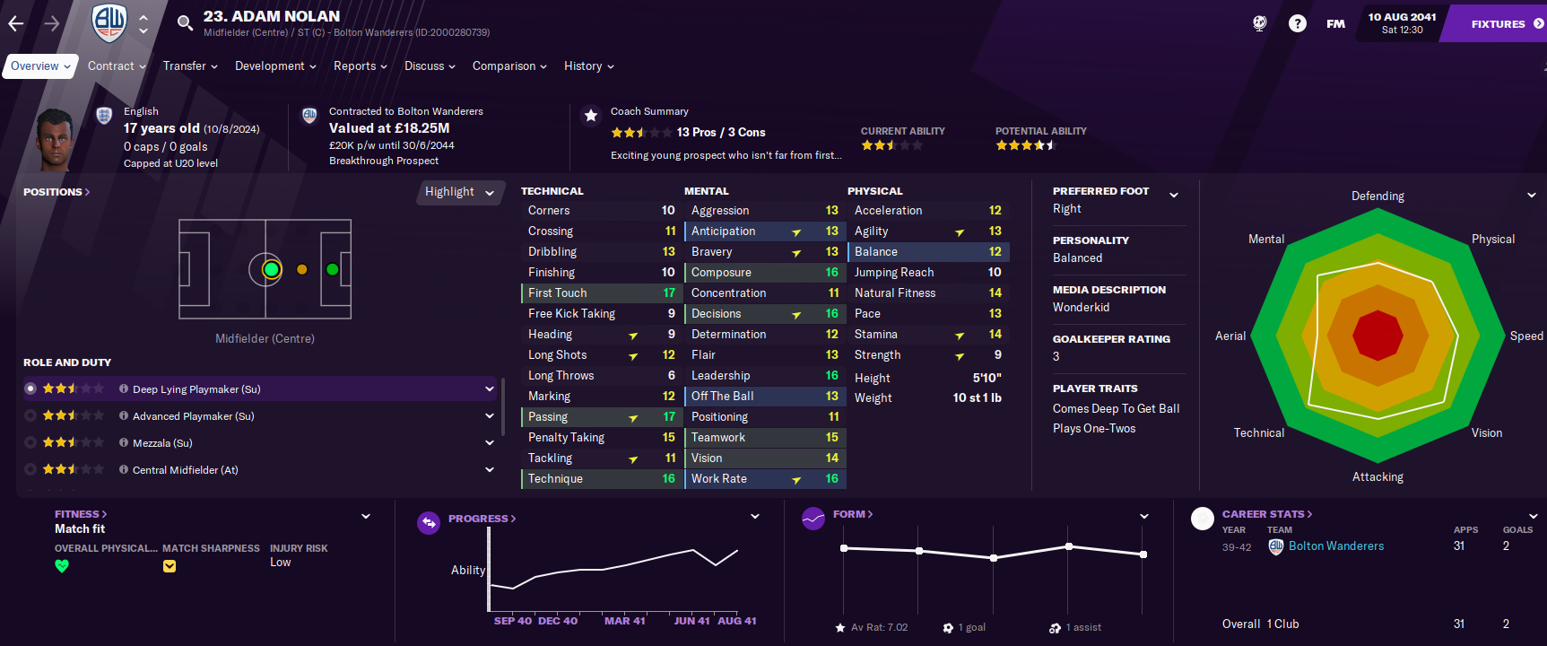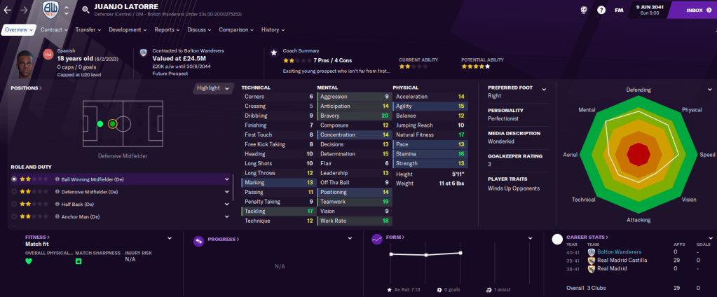 The big focus of this Bolton Wanderers save has been producing our own talents through the youth academy. The summer of 2041 saw the very first product of the academy hang up his boots as former captain Nigel Turner, who came through our 2021 intake, retired after 653 appearances, including 444 league games for Bolton.
