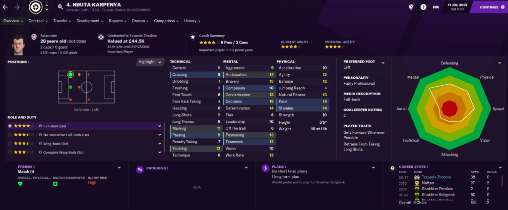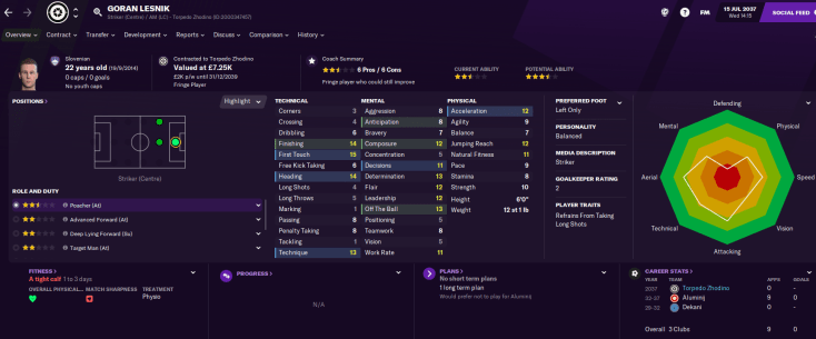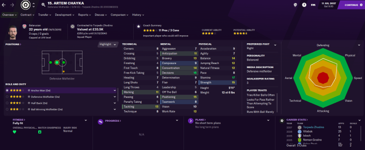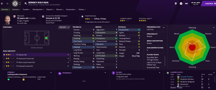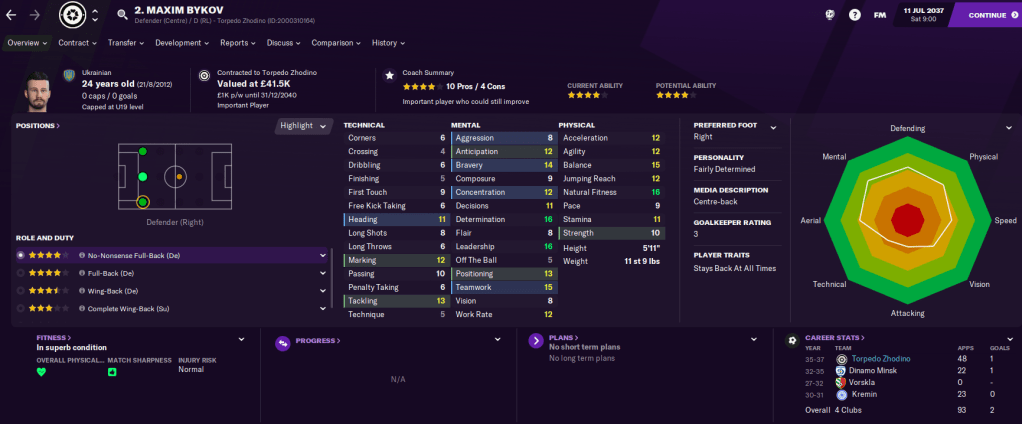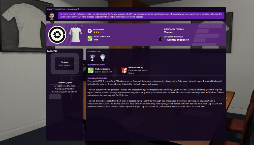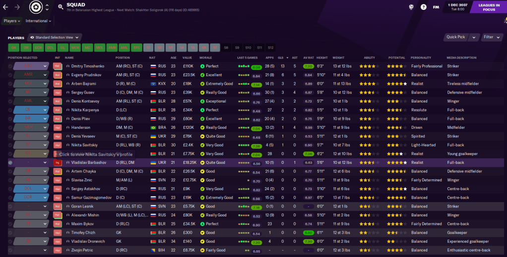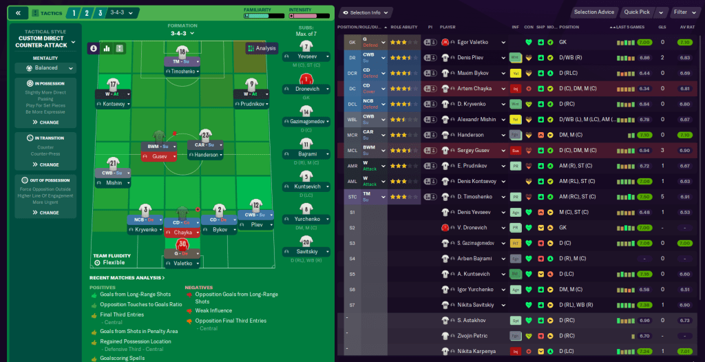 The best attacking option is winger/striker Dmitry Timoshenko, who has good physicals. They also had zero youth prospects, which meant Latunov was working with limited options. As a result, he instantly believed this could be his biggest challenge yet.