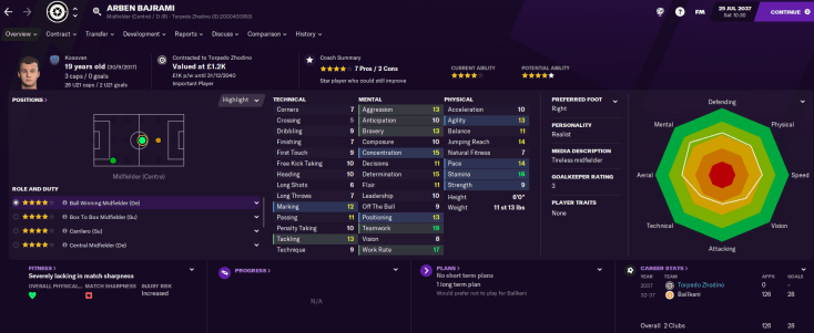 Torpedo Zhodino plays at the Torpedo stadium, which has a capacity of 6,522 and a synthetic pitch – which was a first for Latunov. It has average training and youth facilities and fairly basic youth recruitment. Like Celje before them, the Zhodino board wants Latunov to establish the club as the “best of the rest” by the end of the 2038 campaign. It has a bank balance of £2.3 million and wage budget of just £29,000.