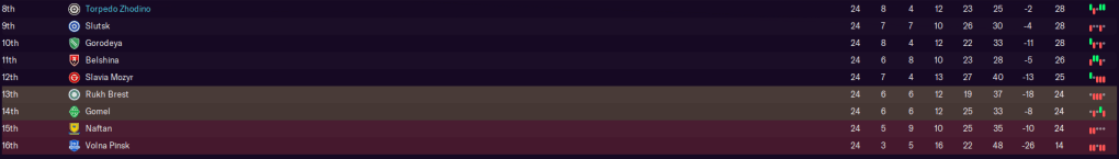 With six league games remaining, Torpedo Zhodino sat four points above the relegation zone and anyone from eighth down to 15th could realistically be relegated!