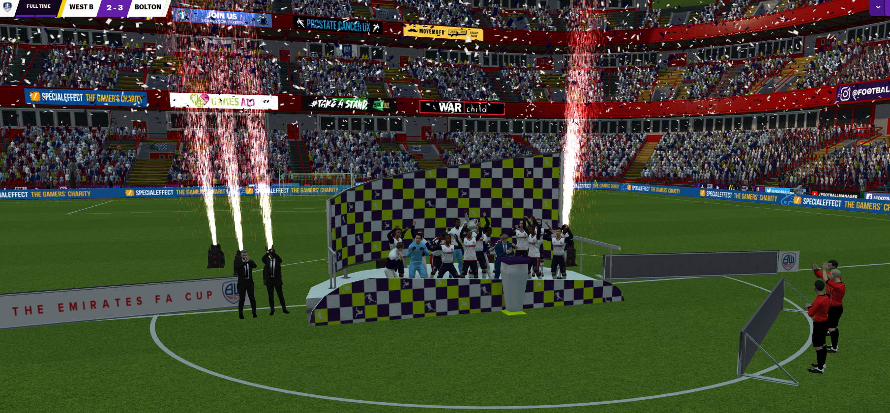 Our final opponents were 2042 winners West Brom, who twice led in a poor first half. Diaby got us level and that man Kocaaslan, who’d had a stinker of a game, stepped up to nick it in the 91st-minute. But Diaby was the main man with two assists in addition to the second equaliser.