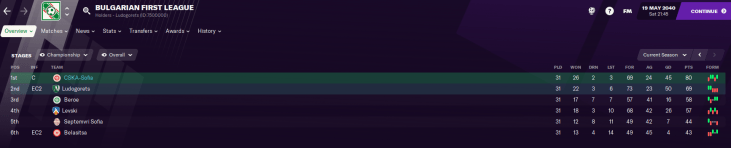 CSKA headed into the Bulgarian First League Championship Phase knowing they needed just seven points from their five remaining matches. If they managed it, Vladimir Latunov would wrap up the 12th national title of the 13 available to him on his Soviet Surge. They would also deny Ludogorets an outrageous 15th consecutive title!