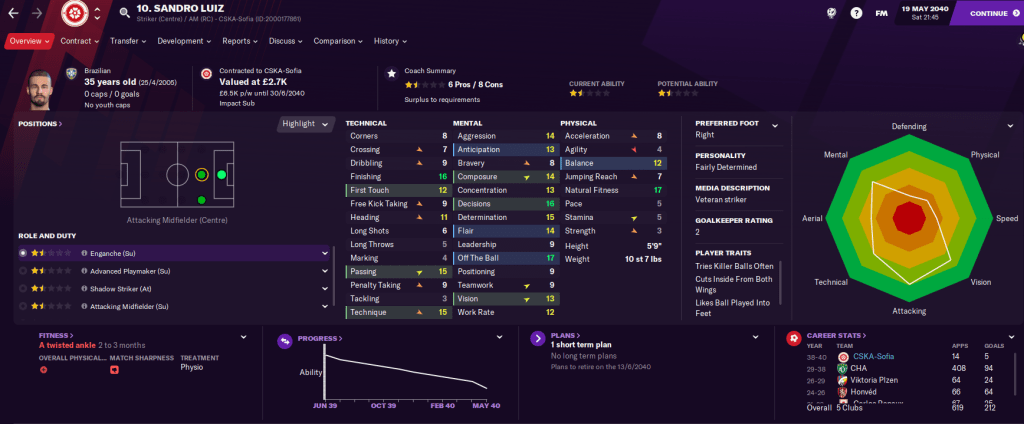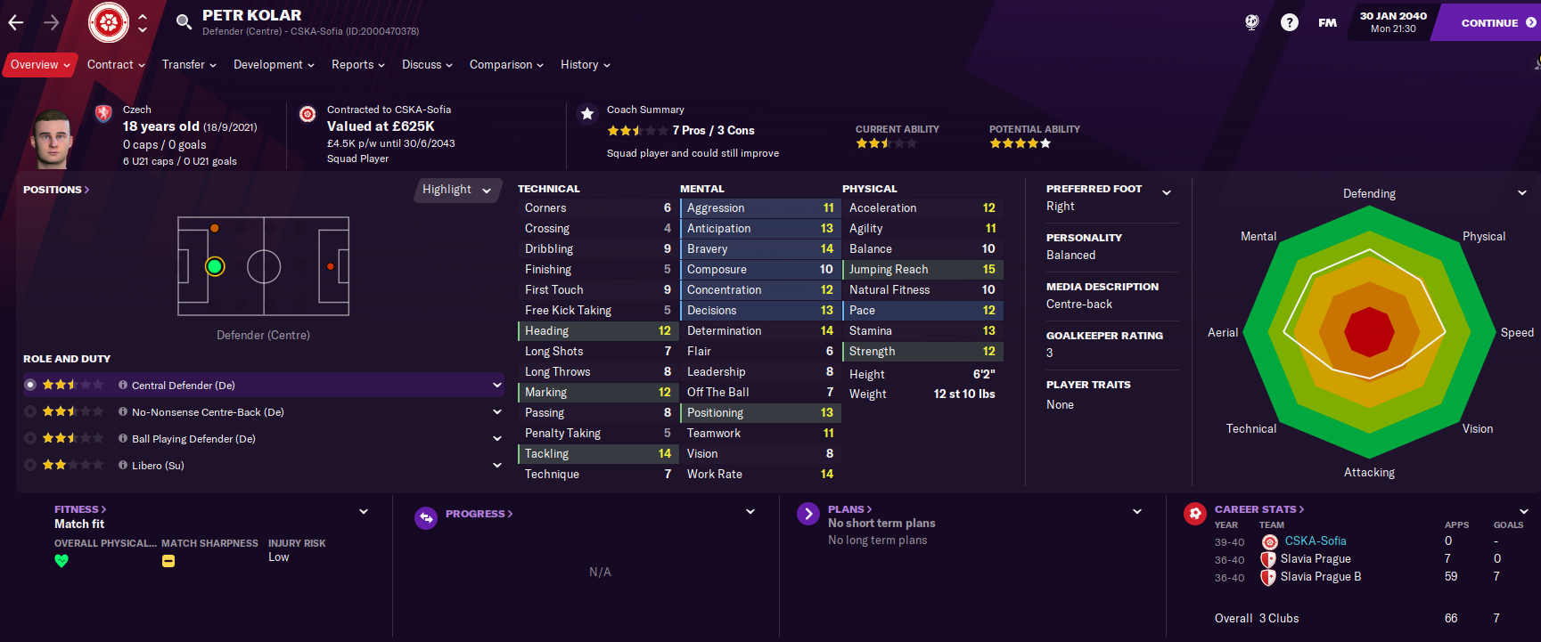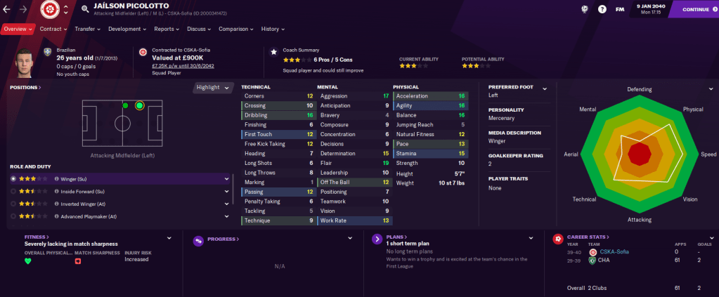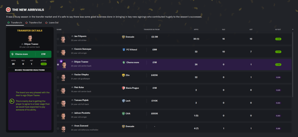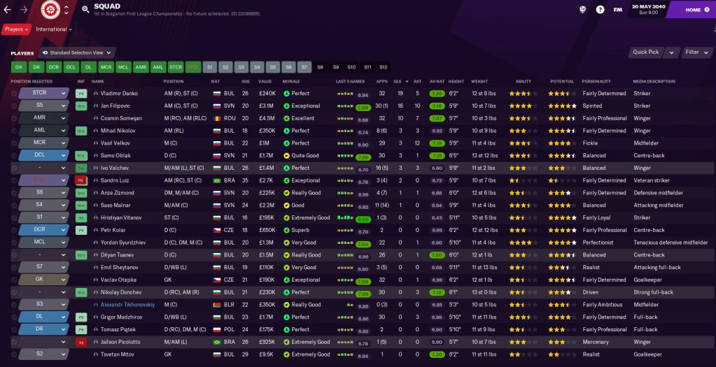 Danko won fans’ player of the season, Velkov got young player and centre-back Dilyan Tsanev was surprisingly signing of the season. Latunov left CSKA in rude financial health, with £22 million in the bank and a £12 million transfer kitty. They also had plenty of exciting youngsters coming through, with three more players in the latest youth intake taking the club to 14 4.5 or 5-star potential players. That includes exciting 16-year-old striker Hristiyan Vitanov, who scored 44 goals in 30 games for the under 19s.