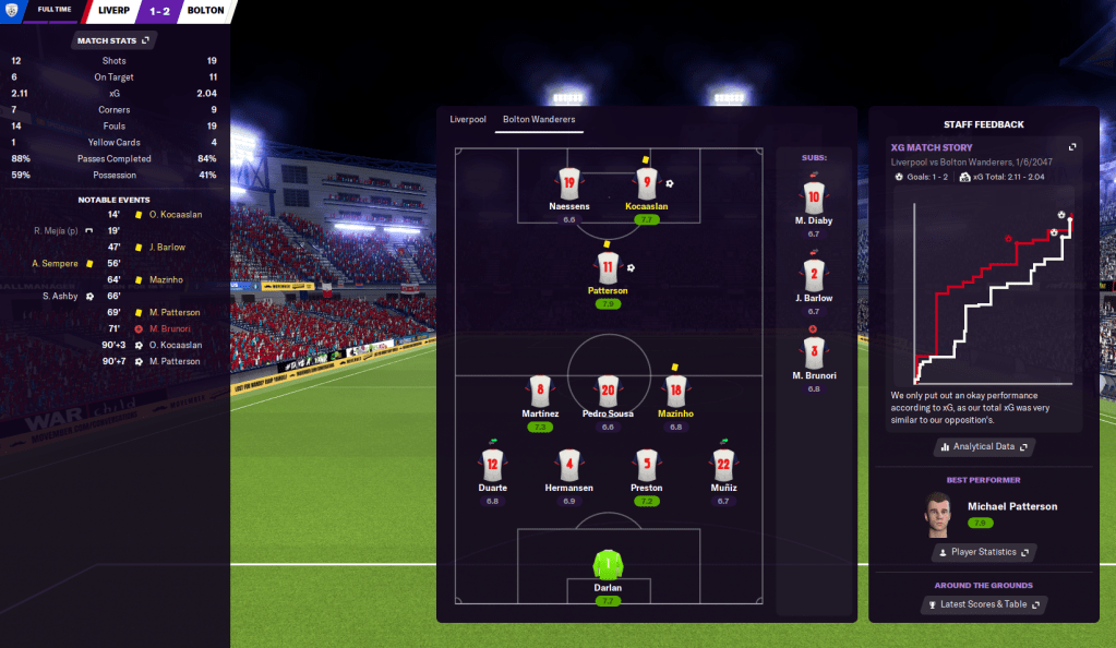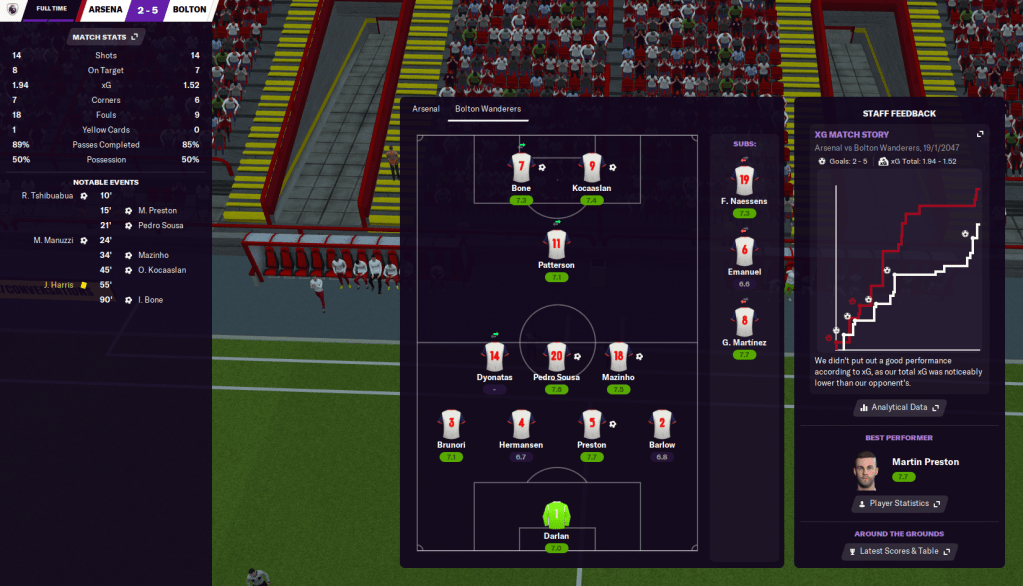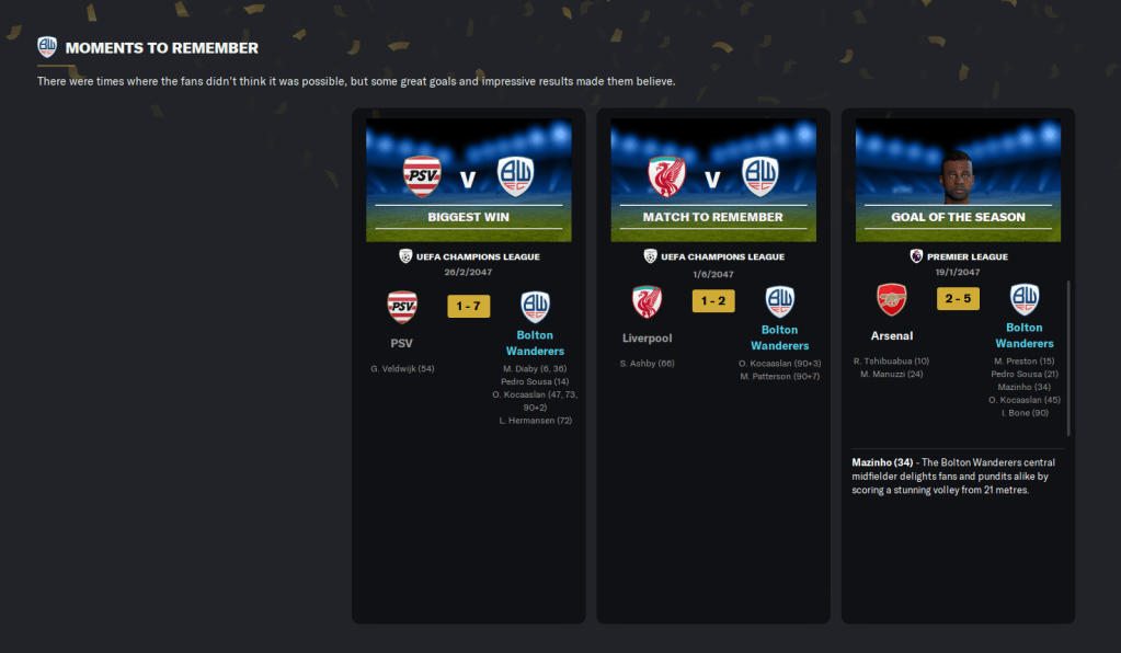 A blistering start to the 2046/47 had Bolton Wanderers romping their way towards a 12th consecutive Premier League title. Halfway through the campaign, Bolton were still undefeated and only drawn once led by some scintillating performances by legendary midfielder Germán Martínez.