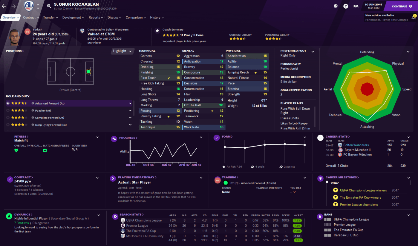 At 27 years into this save and with FM22 a few weeks away, it’s time to begin bringing this save to an end. My aim remains to get Kocaaslan the all-time Bolton league goalscoring record, which I think may take two more seasons. However, I’m also keen to make it to 2050 and we just signed some amazing looking youngsters that I’m keen to see progress. With that in mind, I’m probably going to reduce these updates to one blog per season as we crack on with the save.