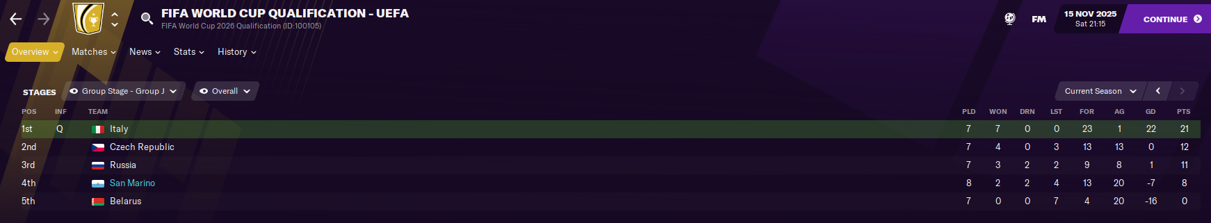 That success set up a qualifying campaign for the 2026 World Cup. San Marino were still a fifth seed and they got a really tough draw against Italy, Czech Republic, Russia and Belarus.