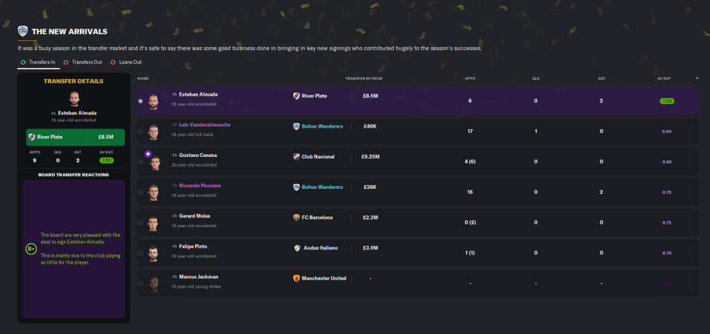 Our focus of snapping up the best youth talent around the world paid off as centre-back Esteban Almada arrived from River for just £3.5 million. He looks like being an absolute beast and joins a squad containing 11 wonderkids, which shows just how good a young side we still have!