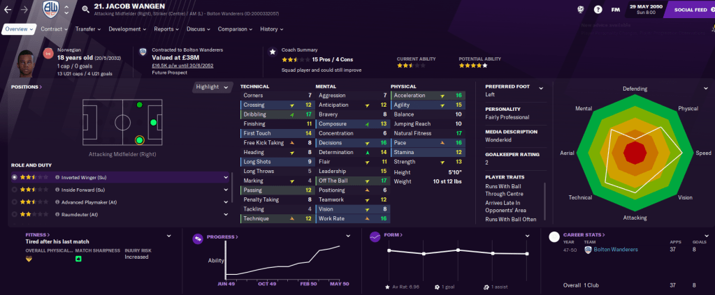 We leave Bolton with plenty of exciting homegrown talent, including the exciting Wangen, who came second in Champions League Striker of the Season and midfielder Kelly, who won our Goal of the Season. Although Ivan Bone’s career has stalled a little this season.