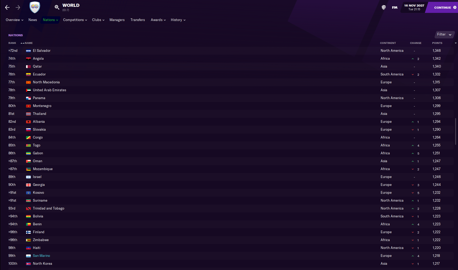 San Marino were on their way to Euro 2028!! And their success saw San Marino rise up into the top 100 of the FIFA World Rankings for the first time in the nation’s history! They now sit 99th, one place below Haiti and one ahead of North Korea.