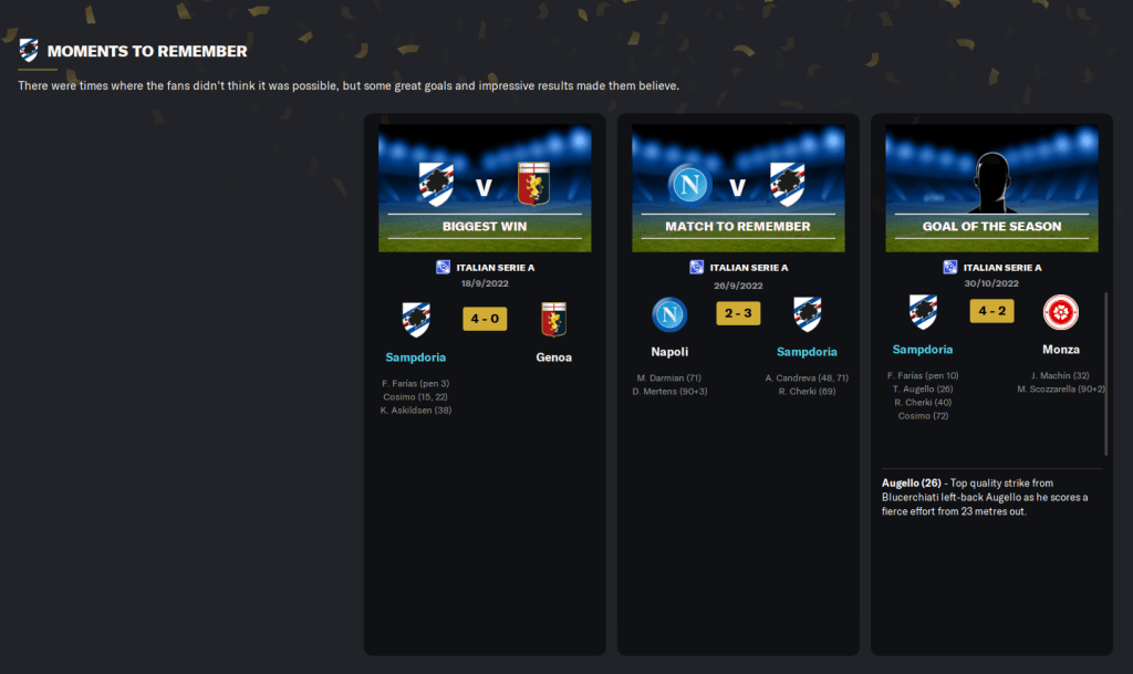 Join us next time as Roberto di Lazaró leads his Sampdoria side into the Champions League and looks to keep hold of some of his better performers with a very tight budget.