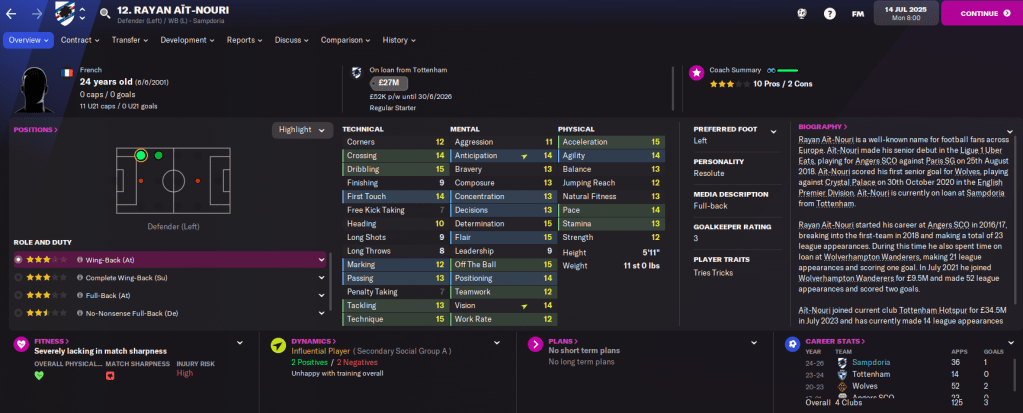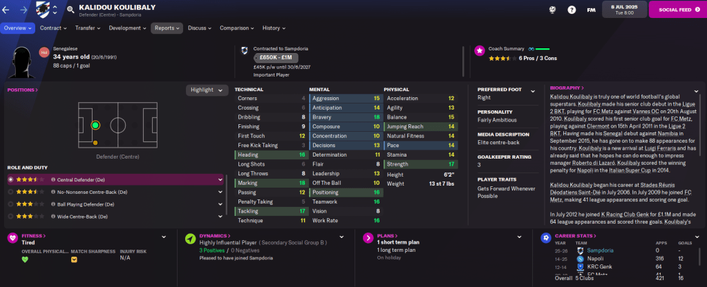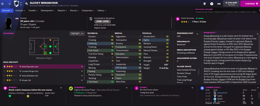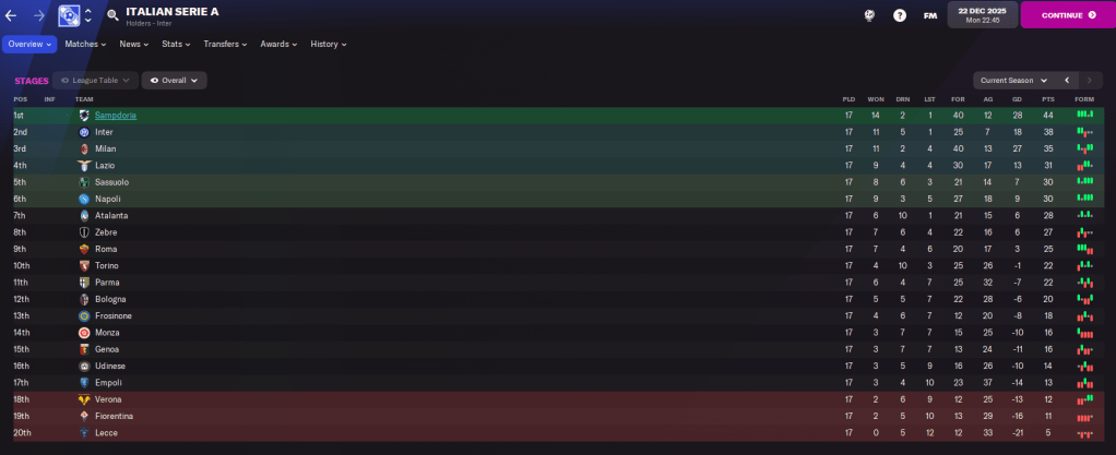 The impressive rise of Sampdoria saw them finish second in Serie A for a second successive season. They remained some way behind a dominant Inter but, with the full Football Manager 2022 now live, manager Roberto di Lazaró was keen to take a title fight to Nerazzurri in potentially a final season in Italy.