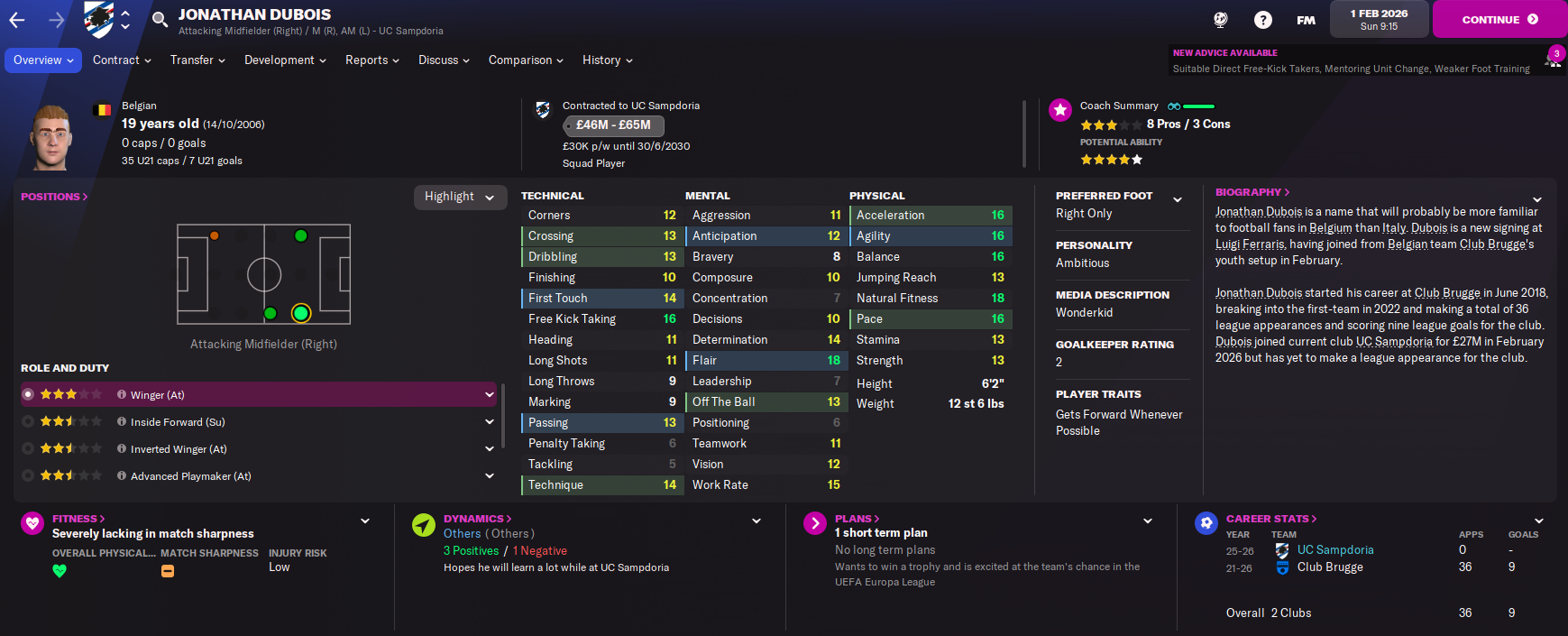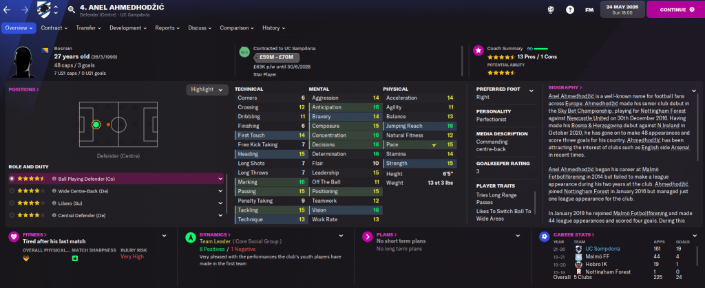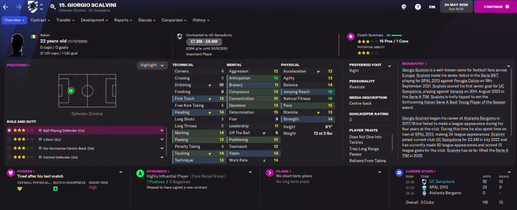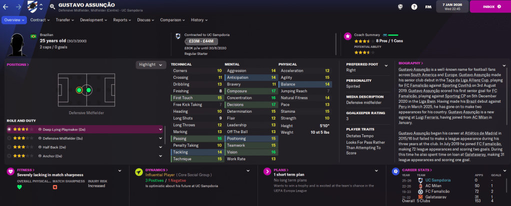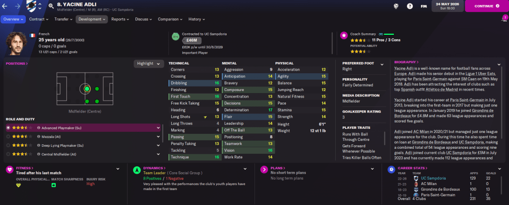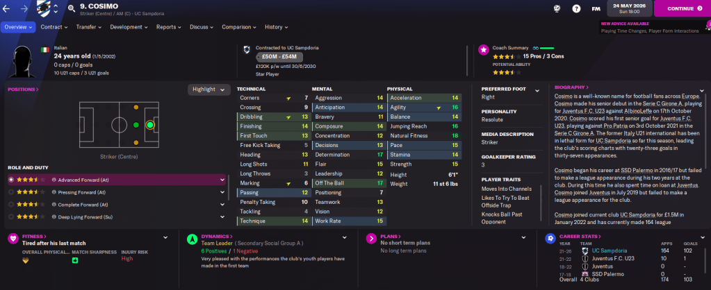 The squad is also in exciting shape with 12 players of at least 4.5-star potential coming through the ranks. While the Under 20s won their league again and the Under 18s won theirs for the first time. So there’s plenty more to come from this flourishing Samp squad.