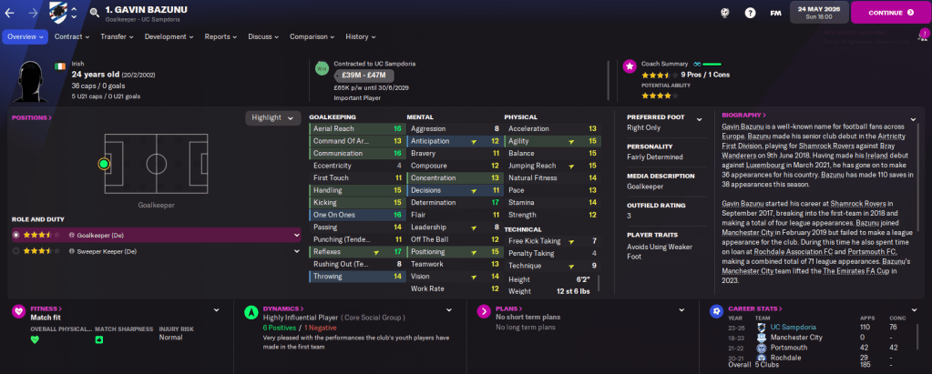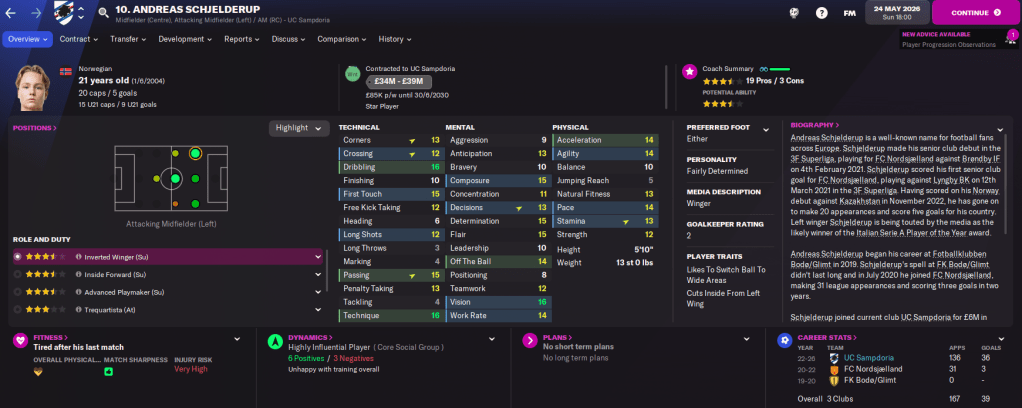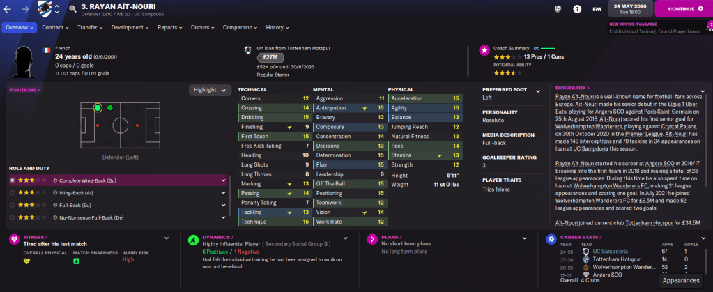 And that brings Sempre Samp to a close. We’ve built a ridiculous team of exciting young prospects and I’m probably going to carry it on as an offline save alongside my FM22 main save, which began last week.